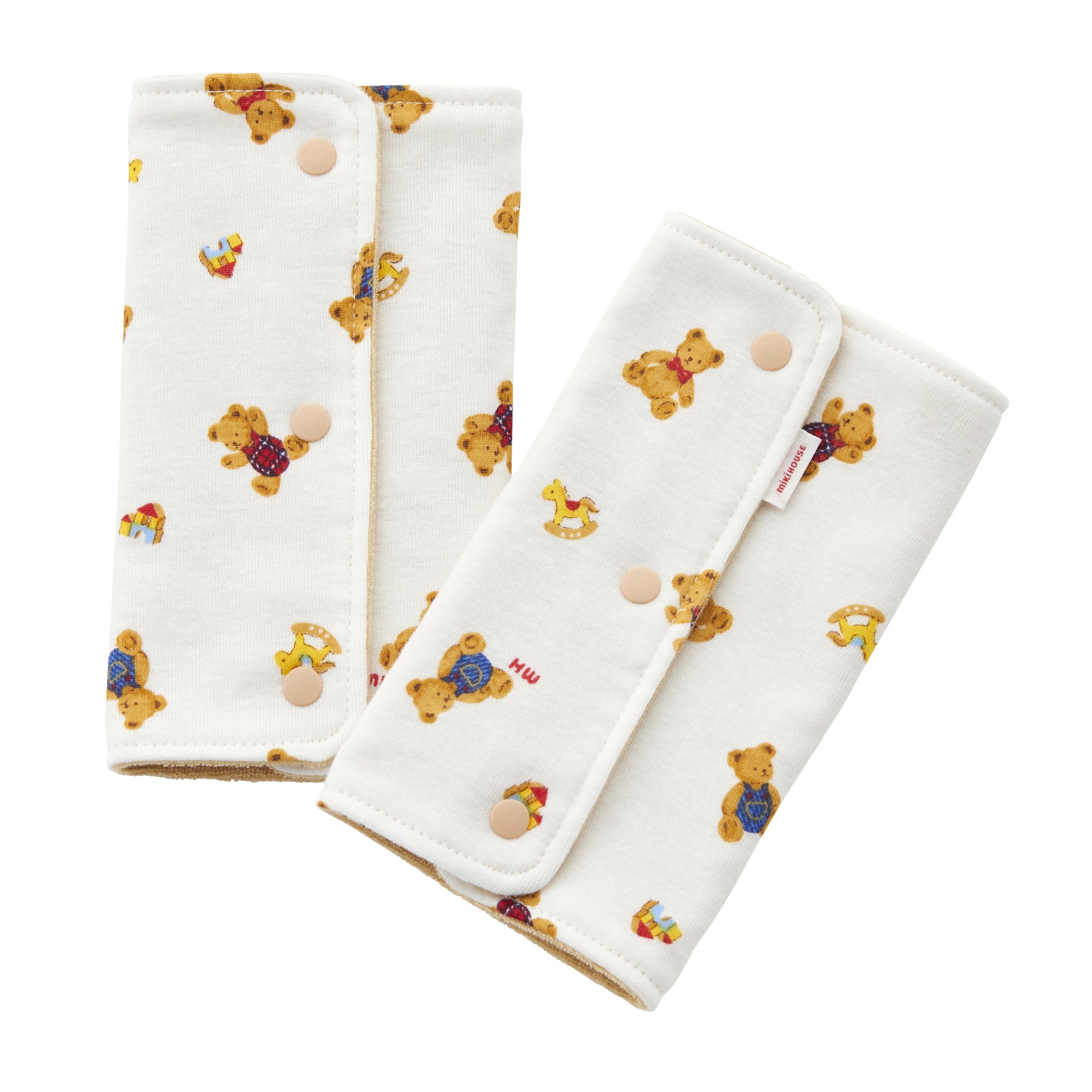 These are belt pads that attach to the shoulder straps of a baby carrier. Attach them to the shoulder straps to firmly protect them from your baby’s drool. Even if they get dirty, they can be easily washed, making this a convenient item that keeps the baby carrier’s shoulder straps hygienic.