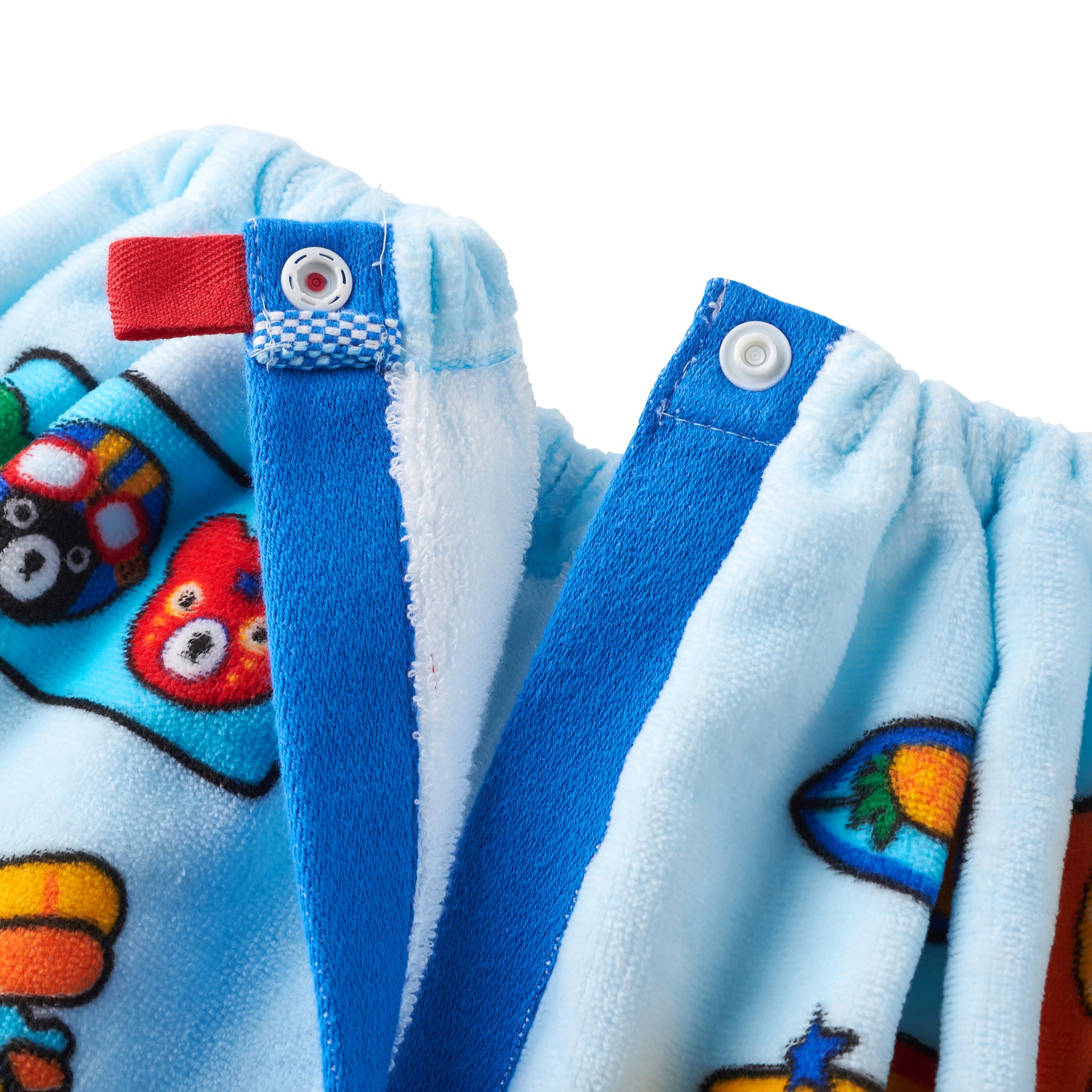 ・The end of the wrap is navy so the edge is easy to see, and the color-coded snaps make it easy to fasten
