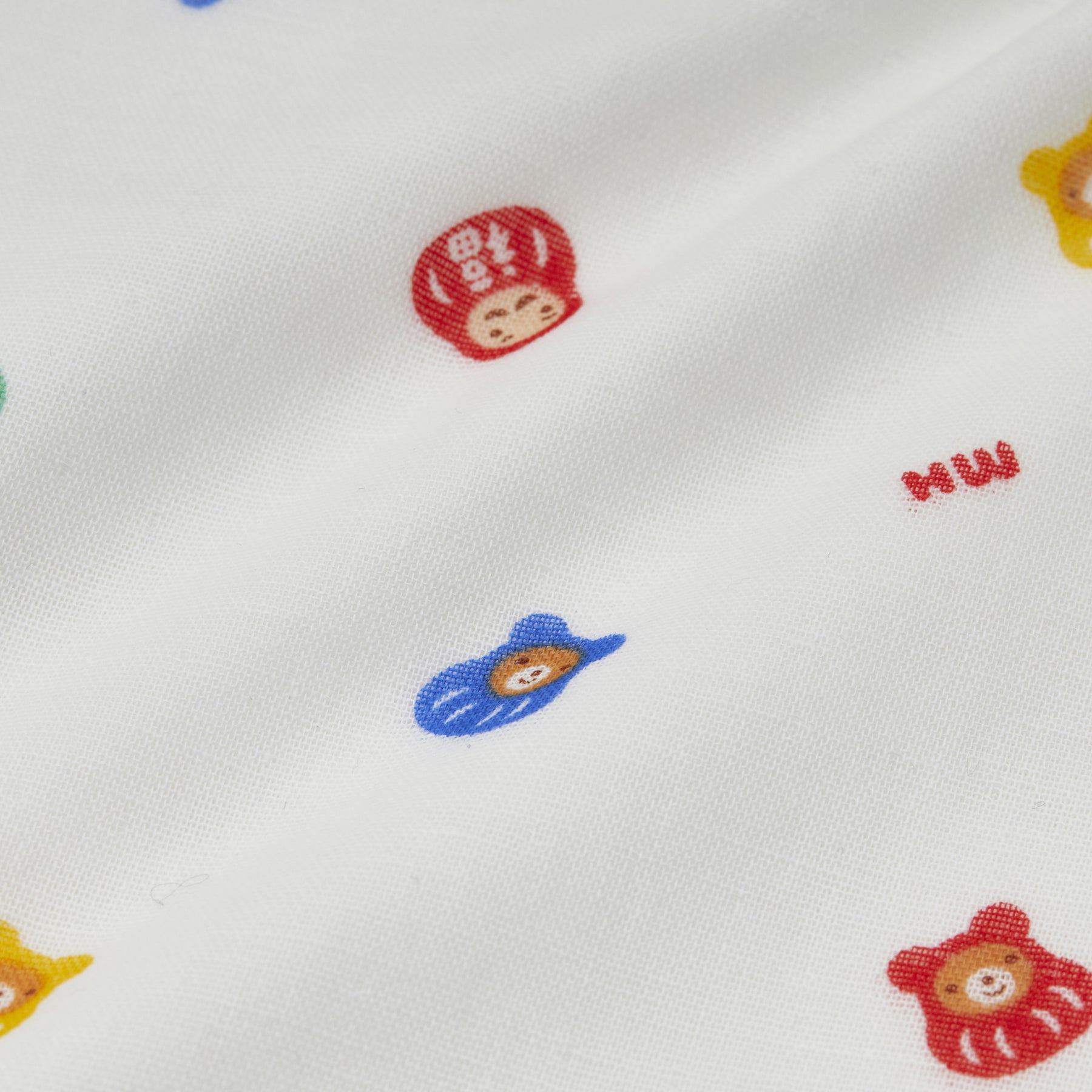 This is a gauze bib with a print pattern of beckoning cats and lucky daruma dolls. A popular, larger-sized gauze bib. The auspicious, distinctly Japanese pattern makes it recommended as a gift or for celebrating a birth.