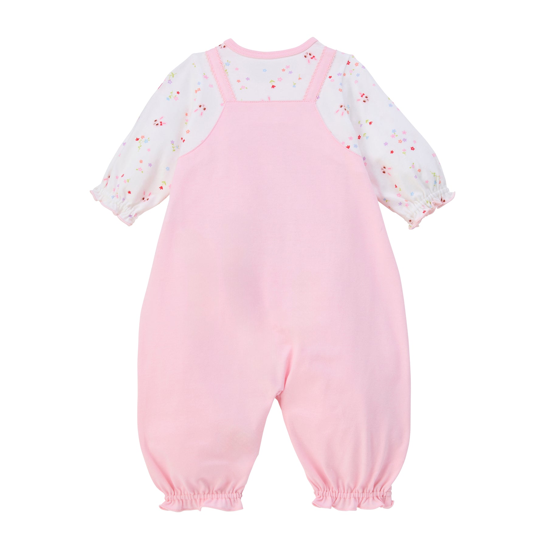 ・Layered-overalls style design with cute pocket ribbons and flower embroidery
