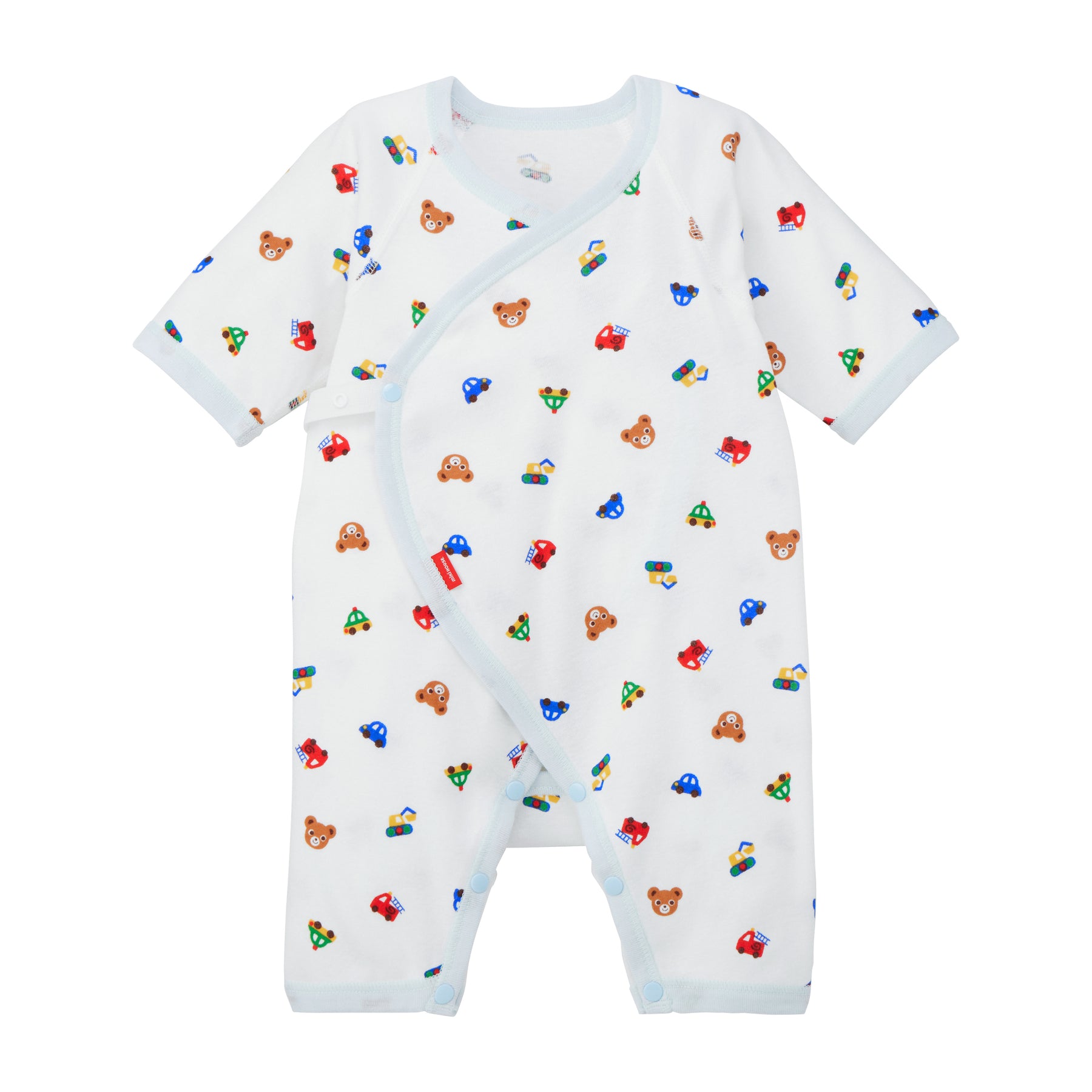 A combi-all made of fleece material that can be worn comfortably at any time of the year. Popular Miki House patterns now appear in baby designs such as Baby Pucchi and Baby Animal. A printed pattern with vehicles, popular with boys, is also available.