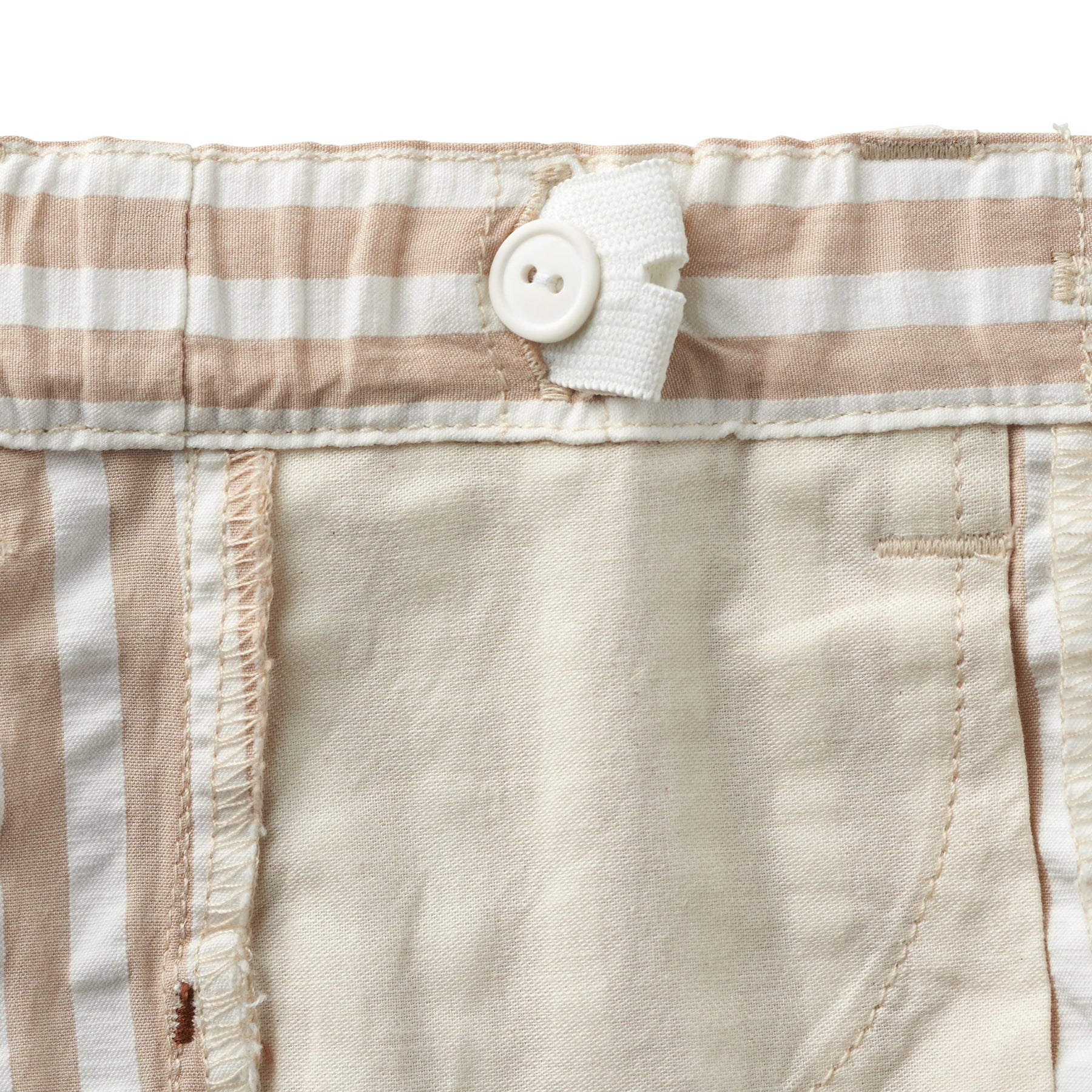 These are refreshing and cool-looking three-quarter length pants. A check pattern in fresh tones and bold beige wide stripes that leave an impression. They give an elegant look even within a casual style. These cool summer bottoms are items that let you enjoy various styles depending on the tops you pair them with.
