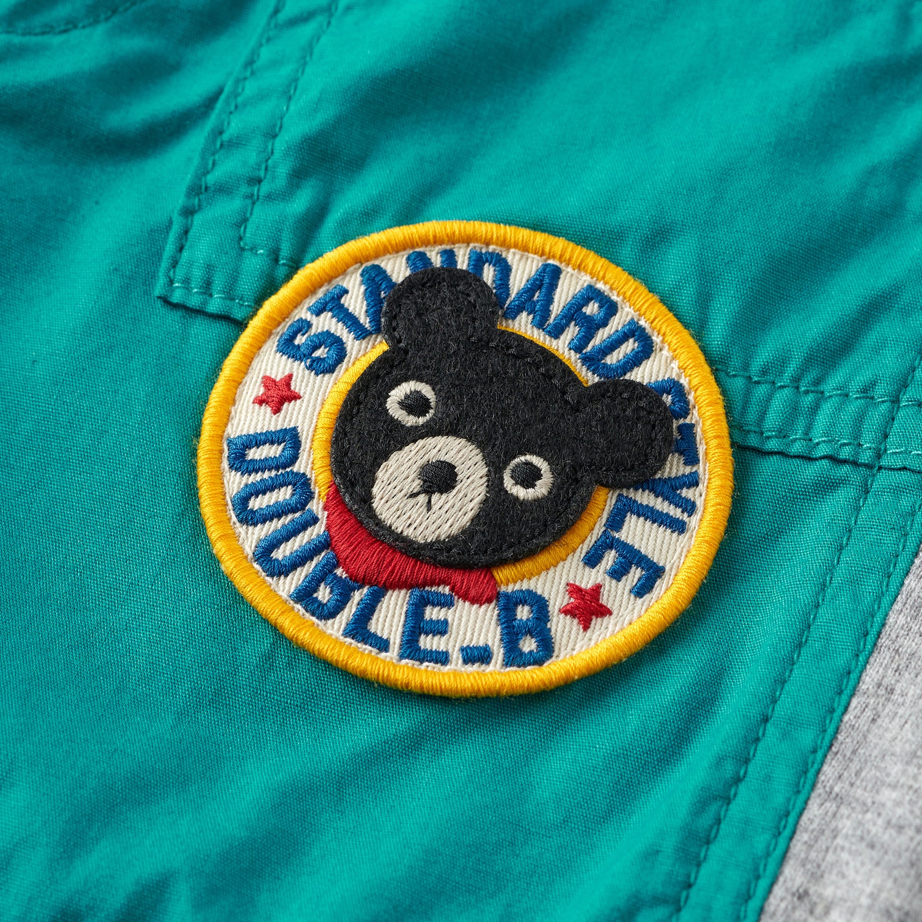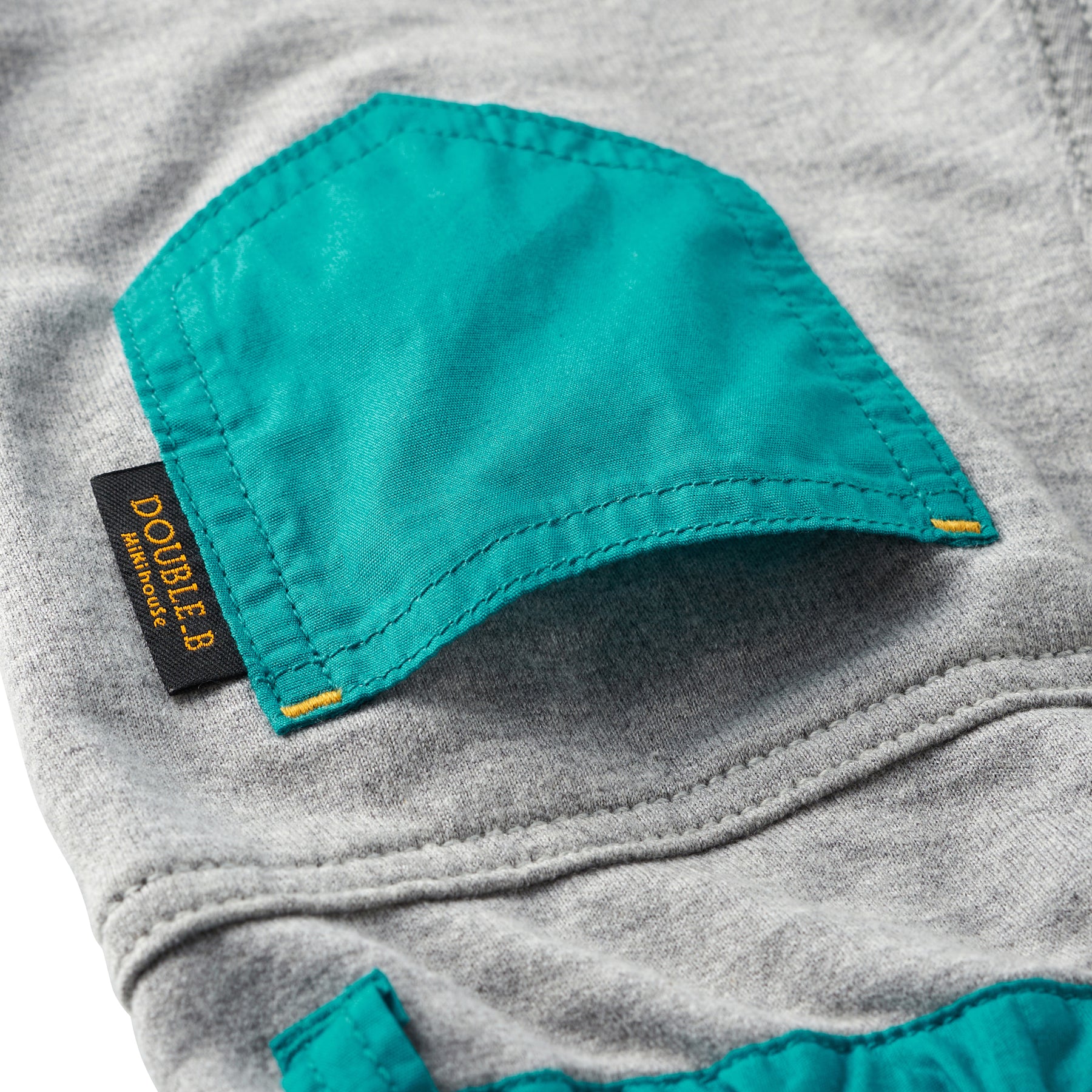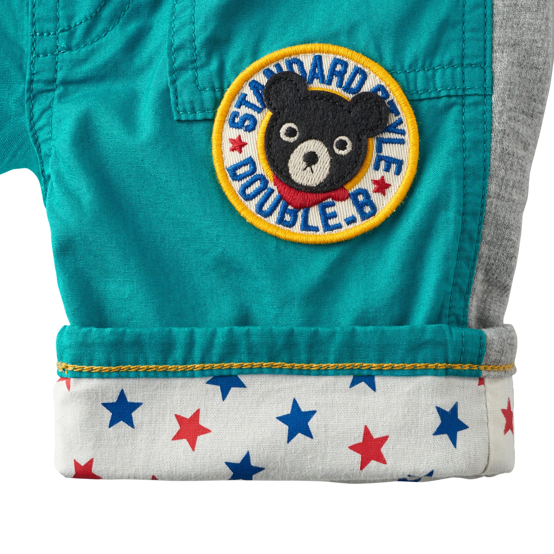 These 3/4 length pants have a strong Double B presence, featuring a large patch below the left pocket. The design focuses on ease of movement and comfort for active children.