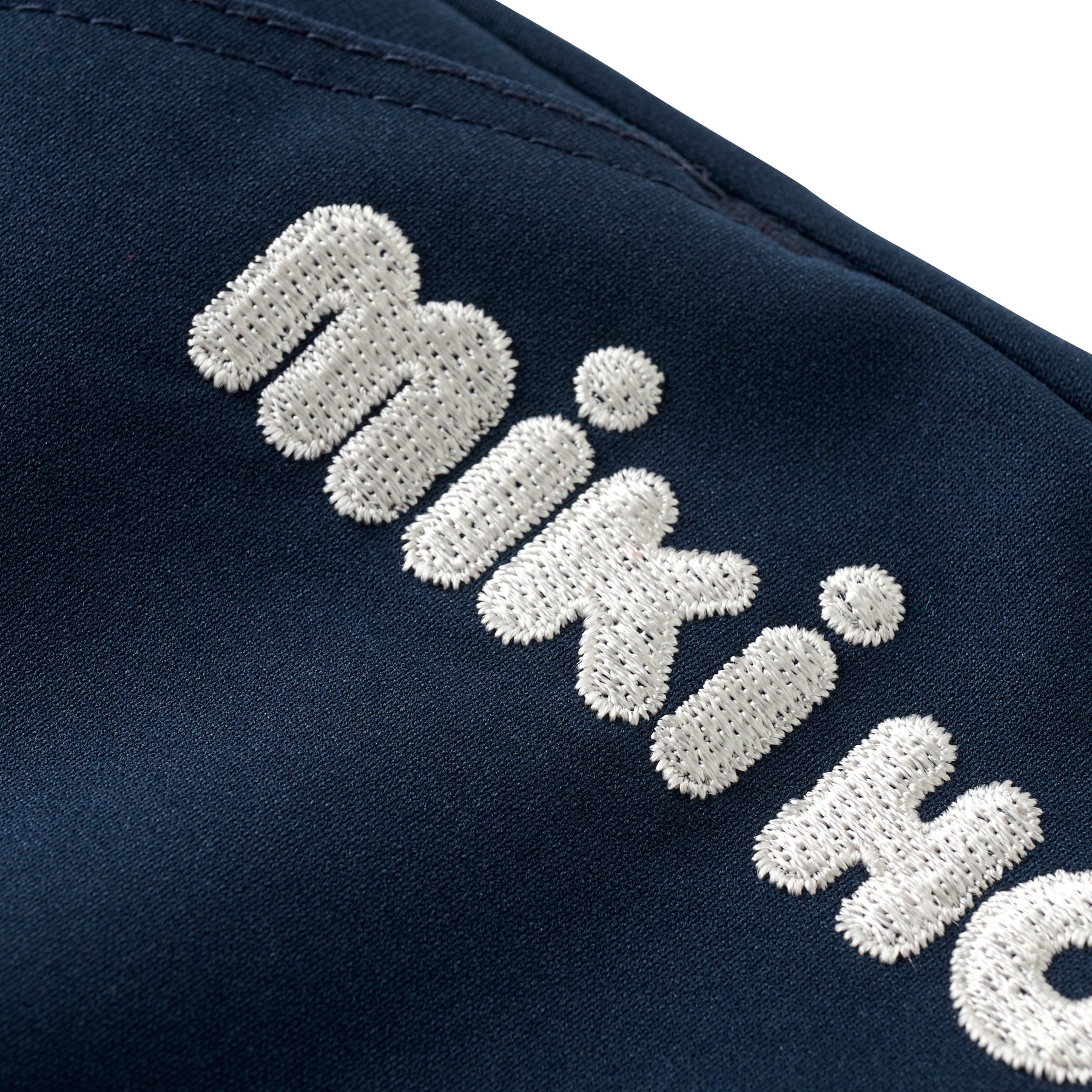 Features a prominent vertical logo embroidery, a signature Miki House design.