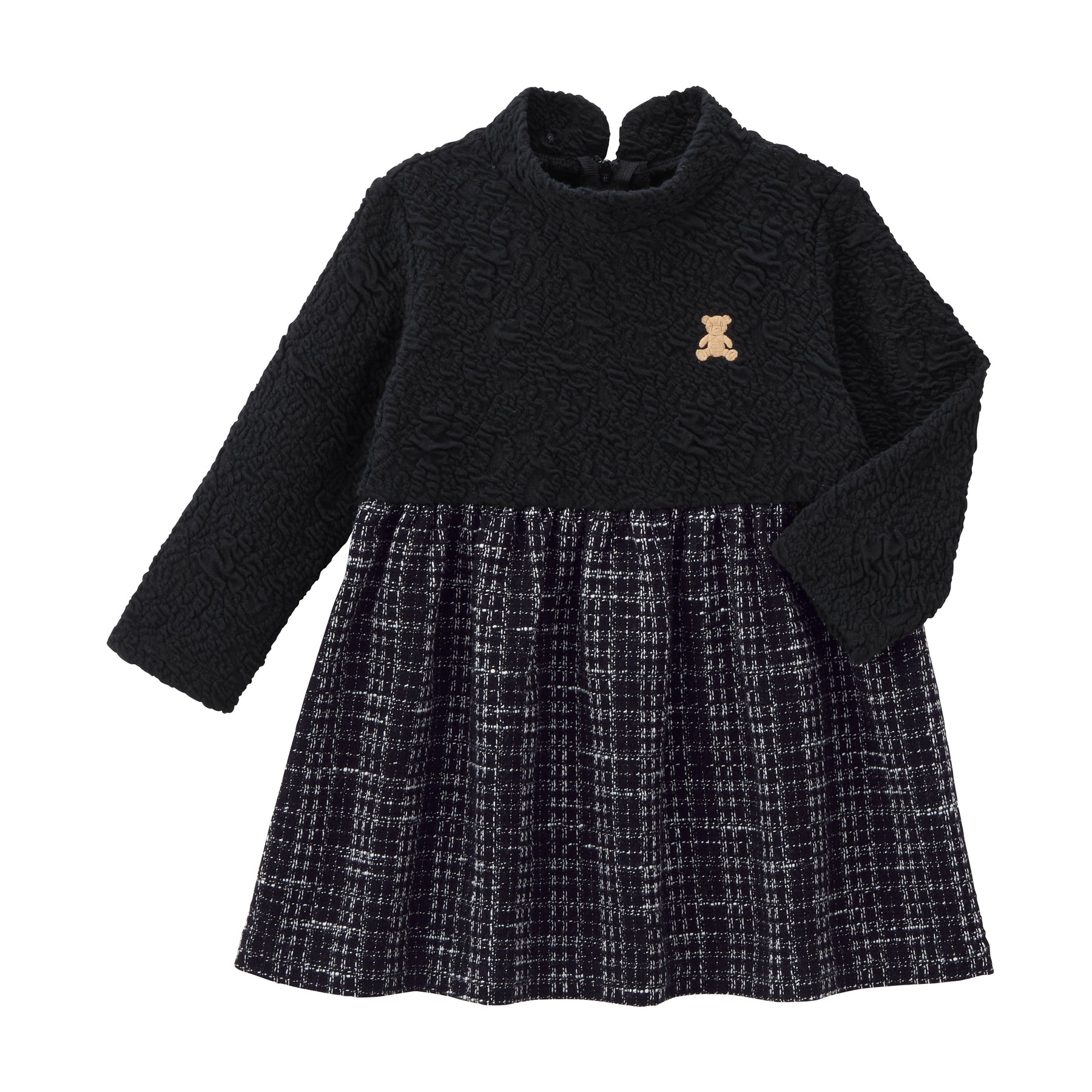 A long-sleeved dress in sophisticated black and feminine ivory, evoking an autumnal feel.