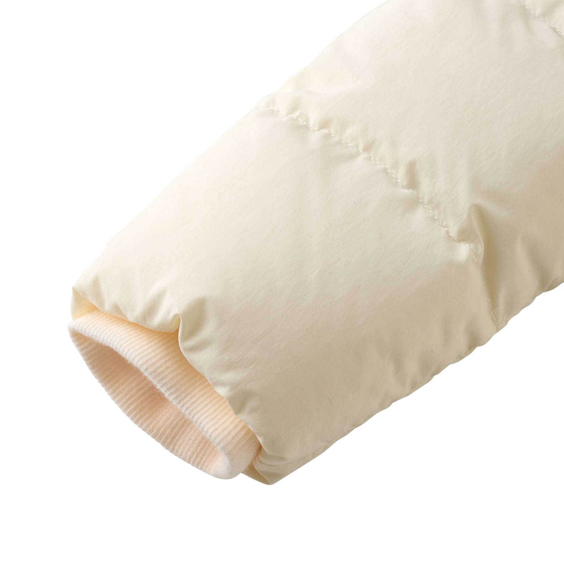 (Outer fabric) Nylon 100% (Lining) Polyester 100% (Ribbed parts) Cotton 98%, Polyurethane 2% (Padding) Down 95%, Feather 5%