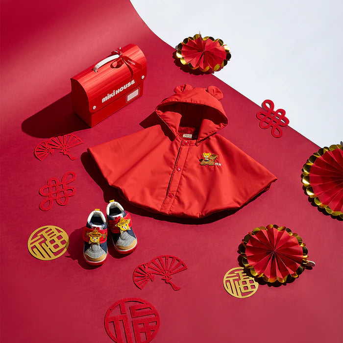This striking cloak features a bold all-red color scheme inspired by Chinese New Year.