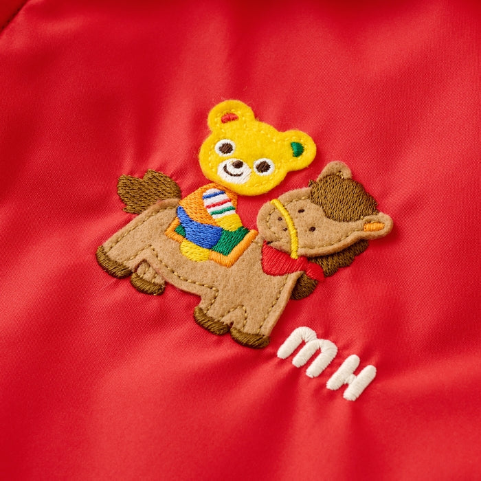 Adorably designed with patches and embroidery depicting Pucchi riding a horse.