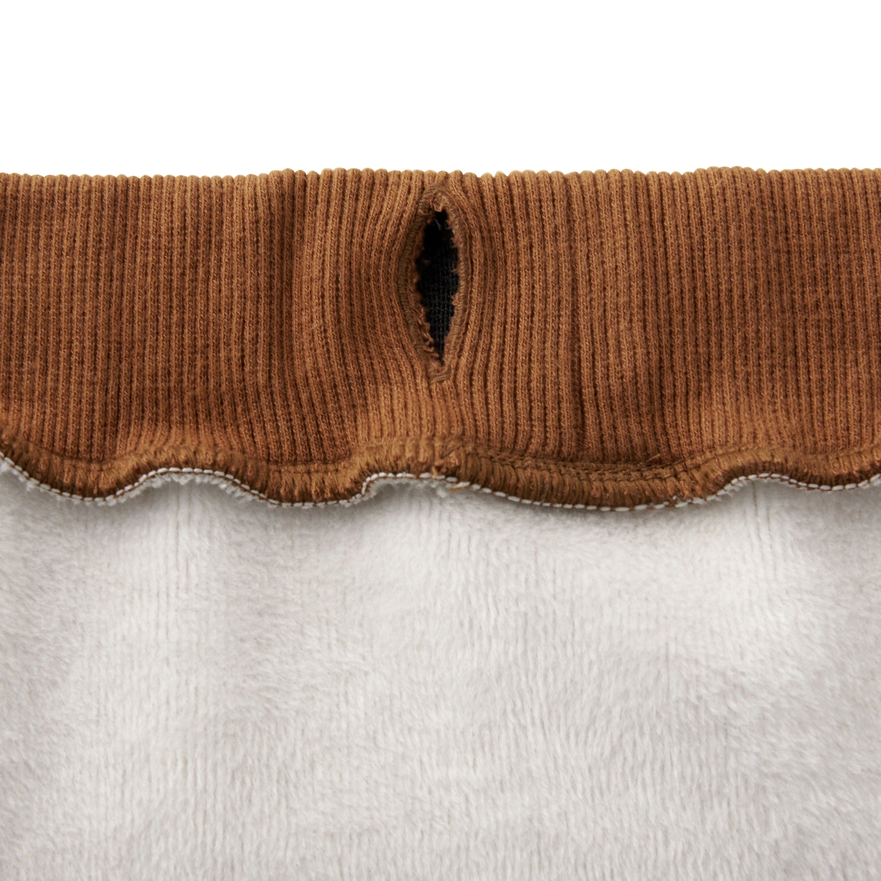 These are comfortable pants made of warm brushed fleece fabric on the inside, ideal for winter wear. They're perfect for the cold season, offering cozy warmth even when worn alone. These soft-looking bottoms pair well with stylish knitwear or cool-toned winter jackets.