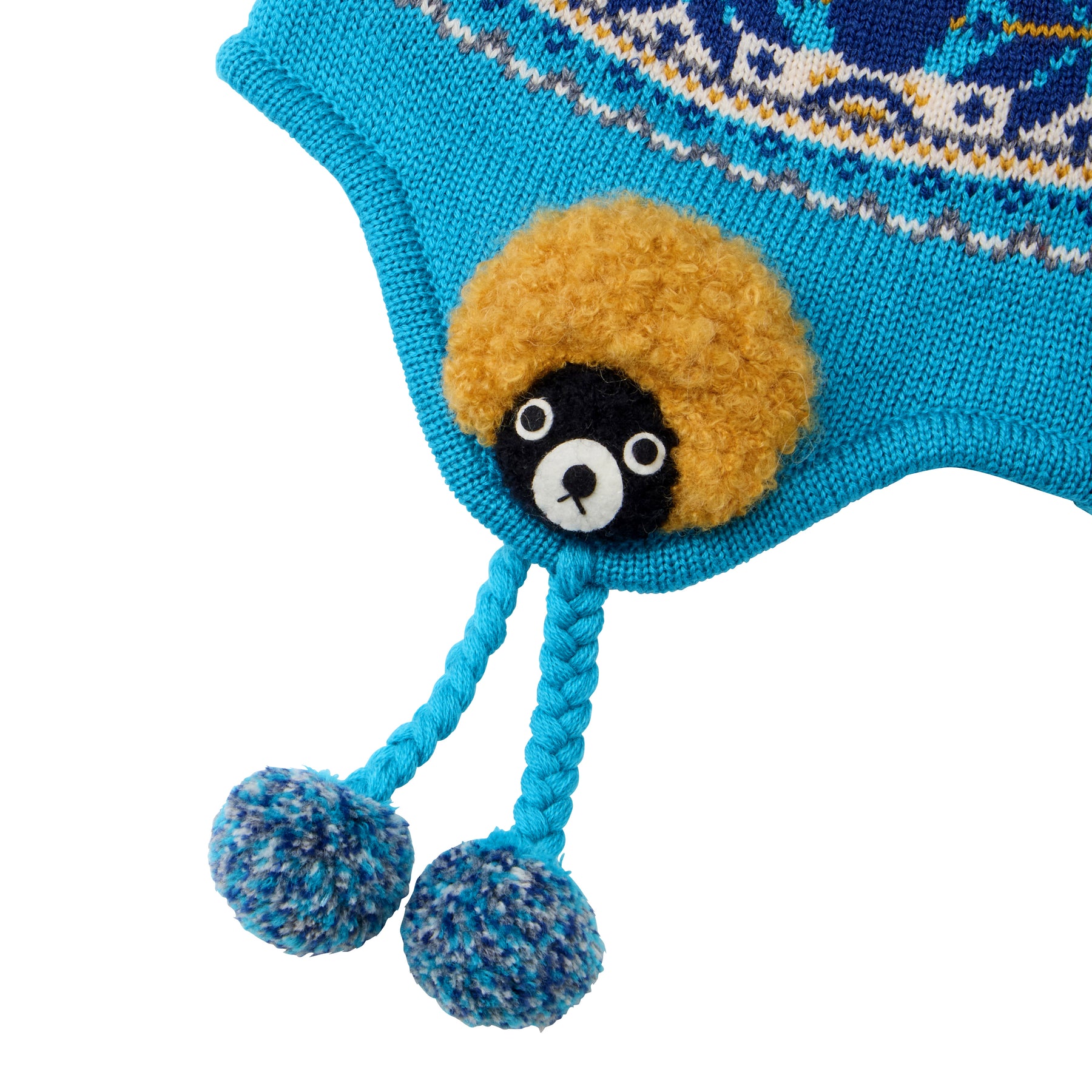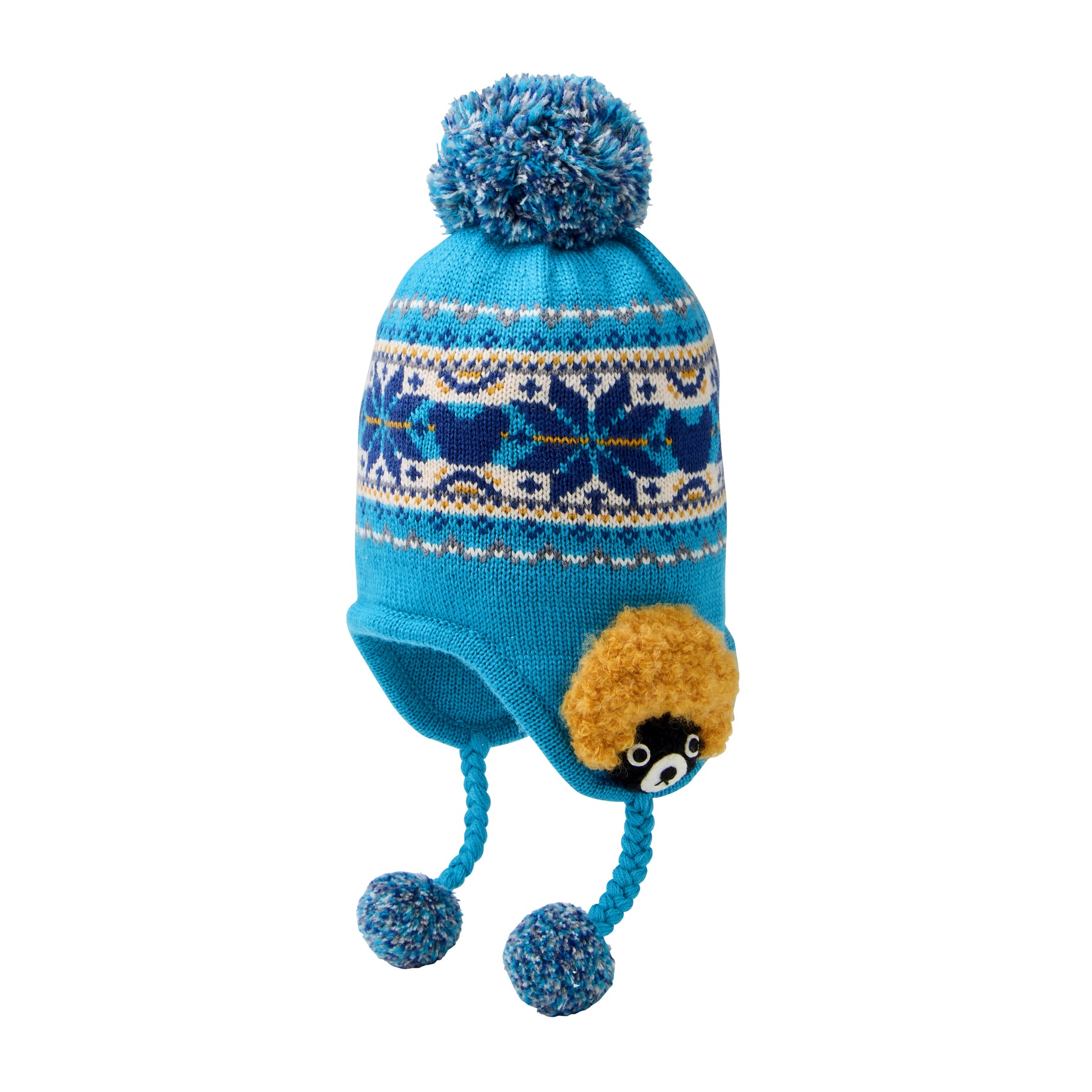 A hood (knit hat) featuring a 3D bear knit motif, based on a classic Nordic winter pattern. Made from an original blend material that incorporates acrylic without compromising the softness and warmth of wool—perfect for cold winter days.