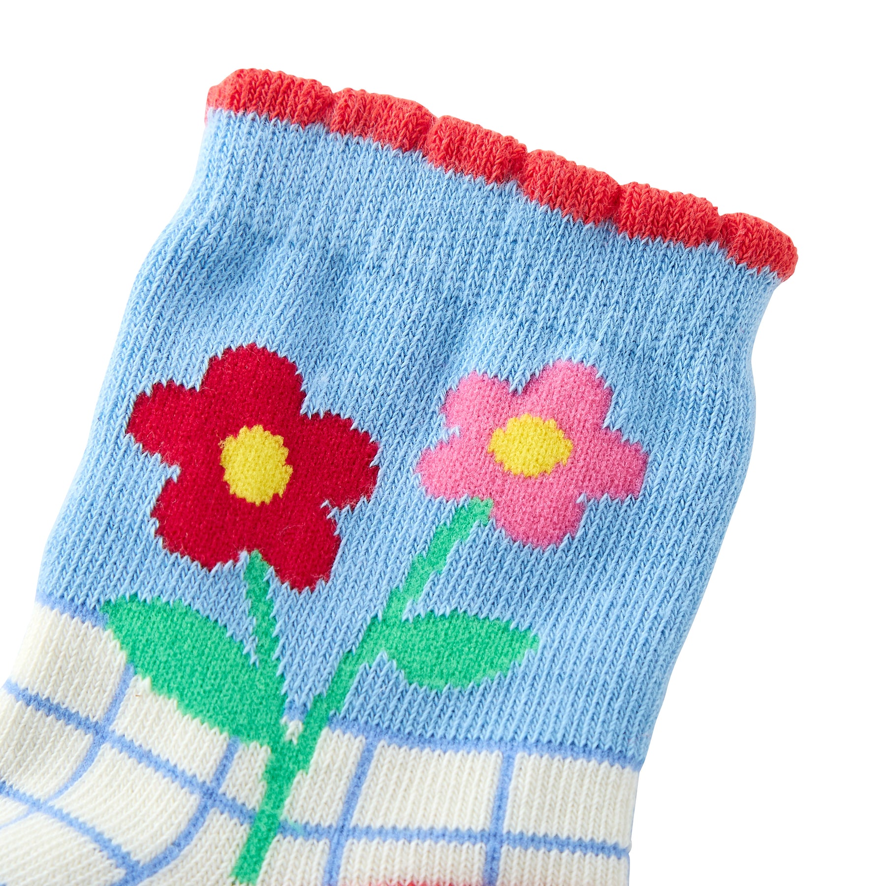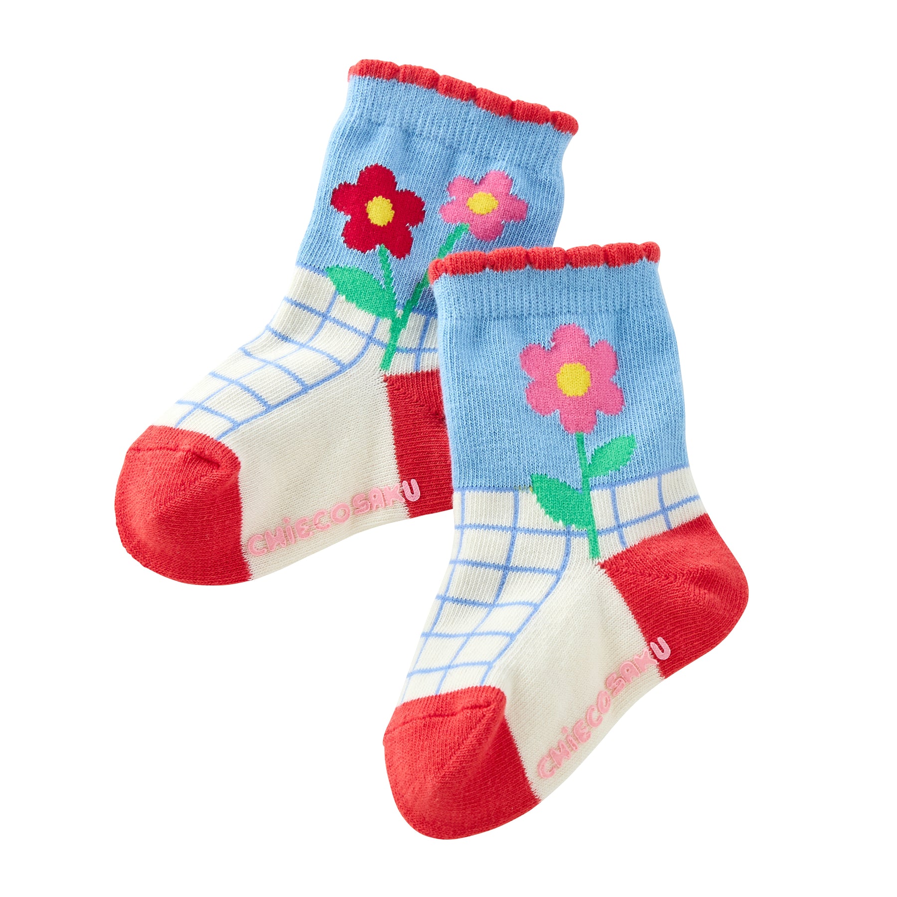 These are socks with a blue check and flower pattern. We recommend coordinating them with the series that expresses Chieko’s favorite “Milk Soda Flavor.”
