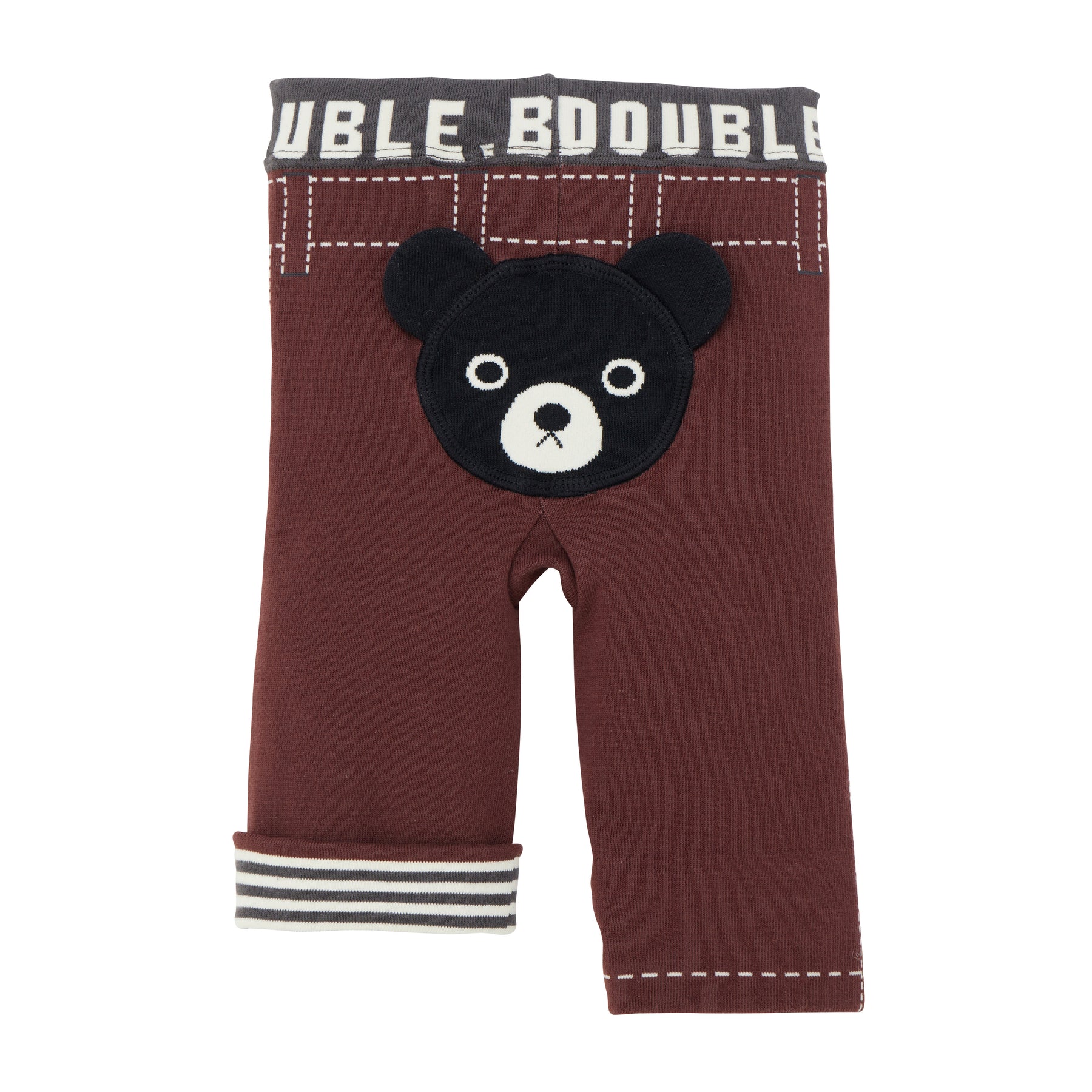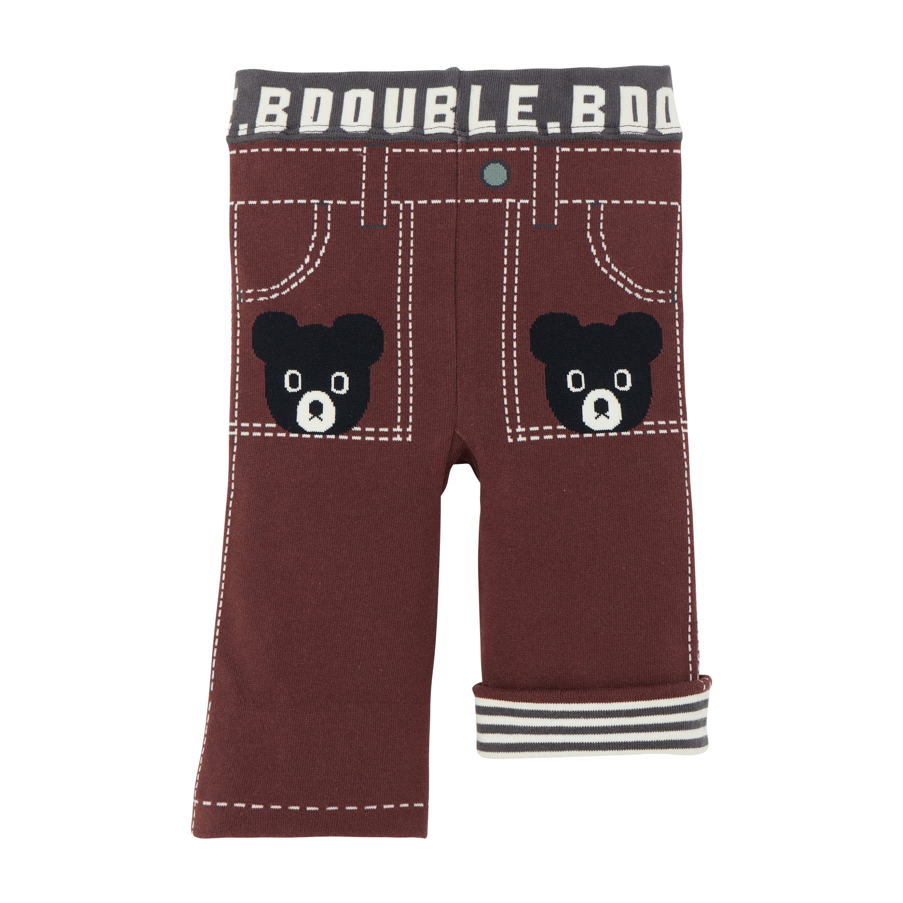 These are three-quarter length leggings with a three-dimensional black bear attached to the bottom. Recommended for babies making their debut in separates. A popular item that is easy to wear and does not restrict your child's movement.