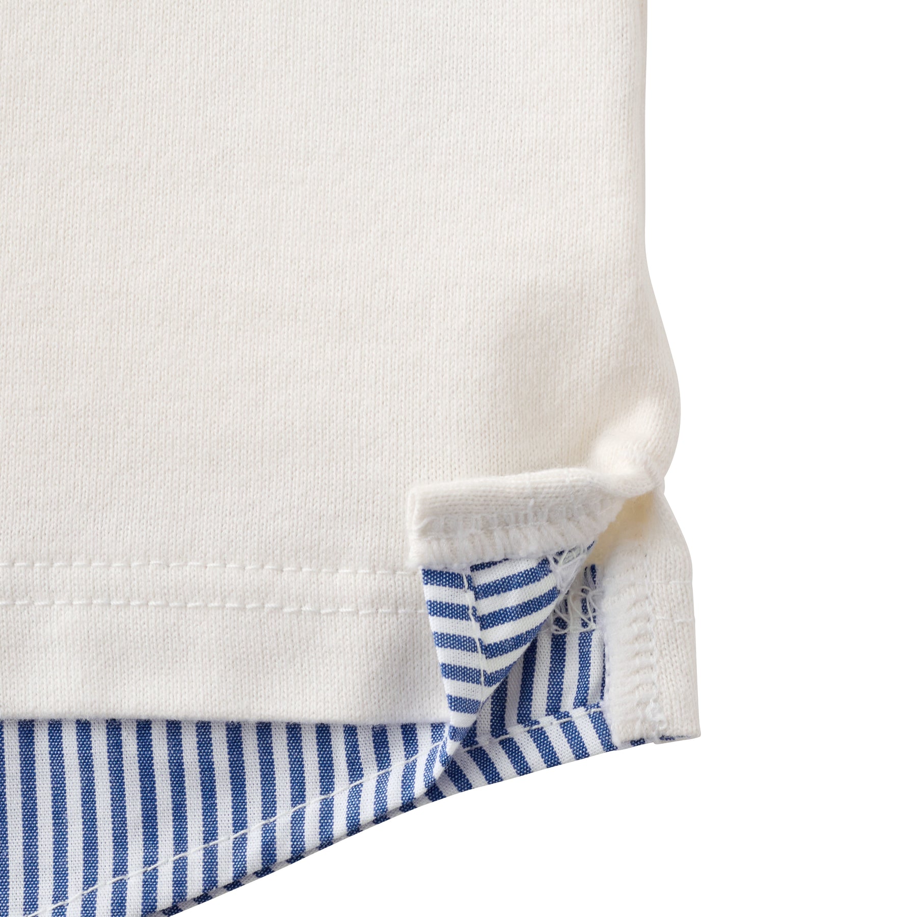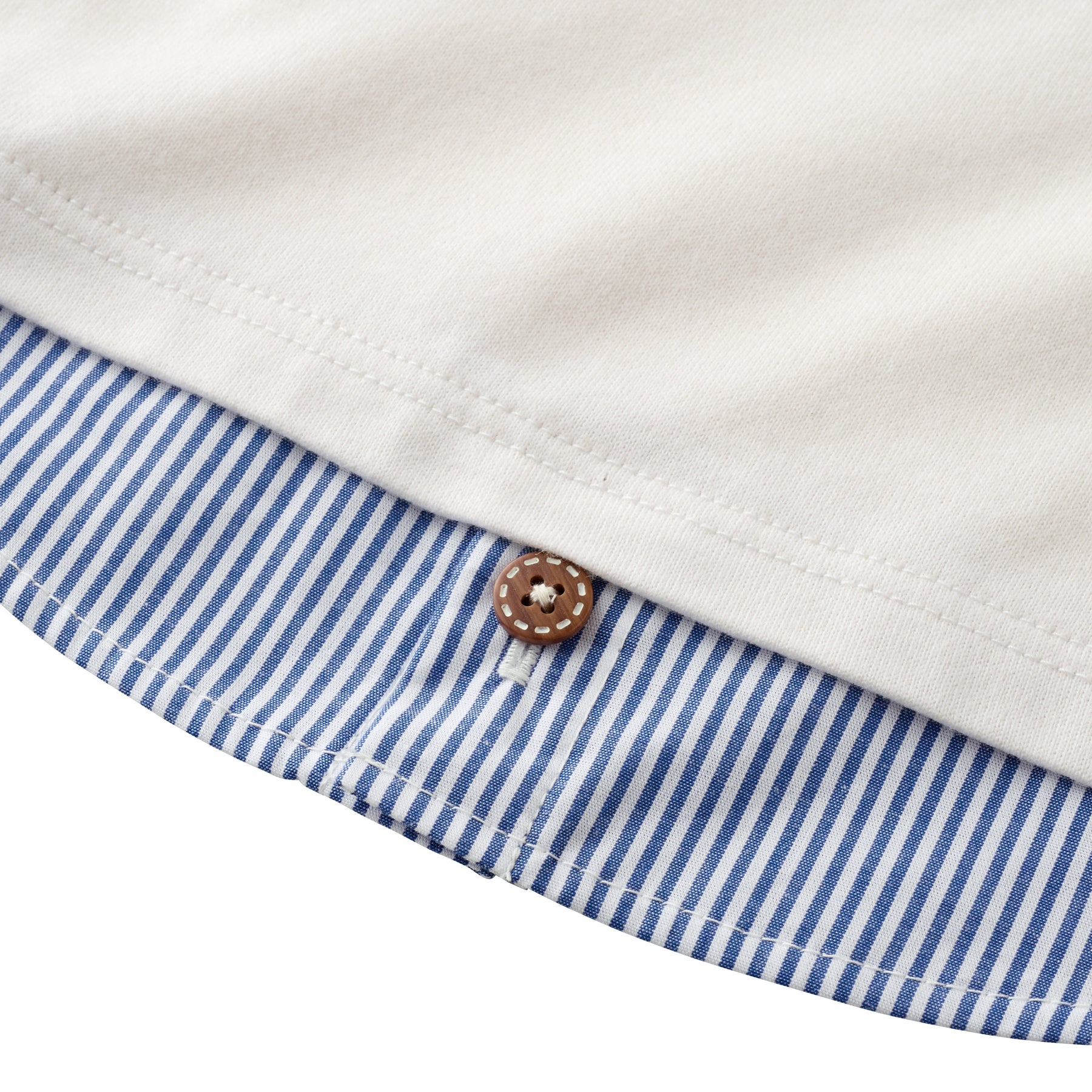 The layered part looks like a striped shirt fabric, so just wearing one piece makes you look like a fashion expert!