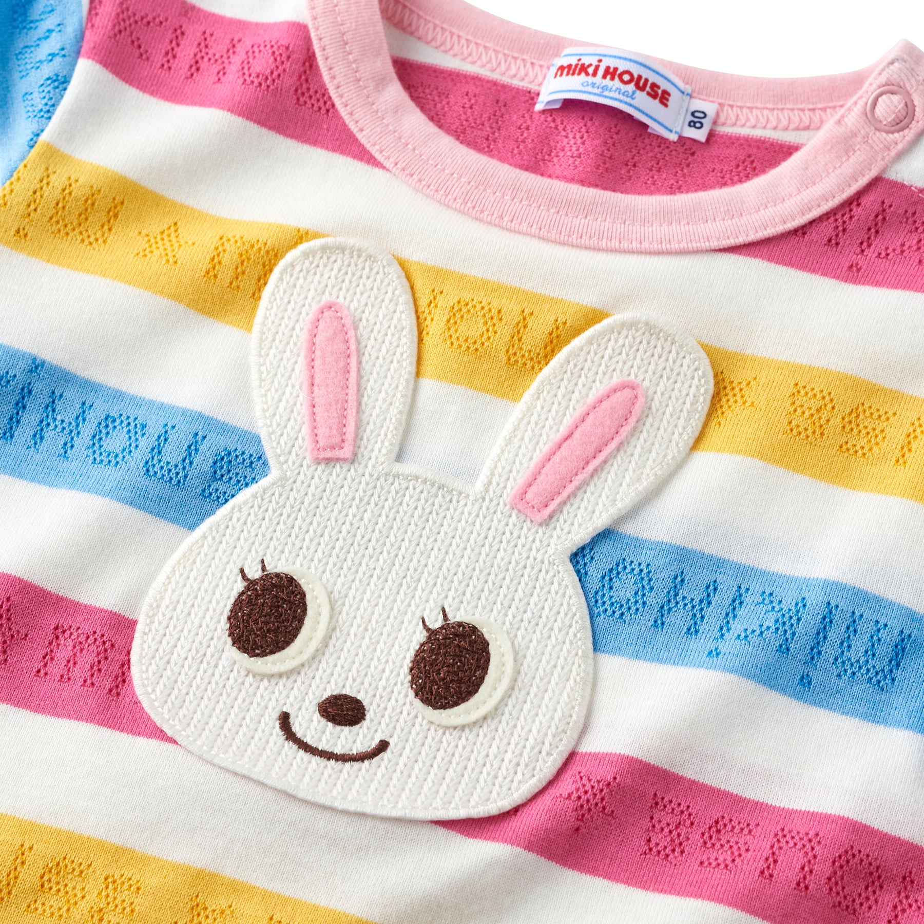 This short-sleeved T-shirt features a summery, colorful border pattern with large Pucci and Usako faces that make a strong impression.