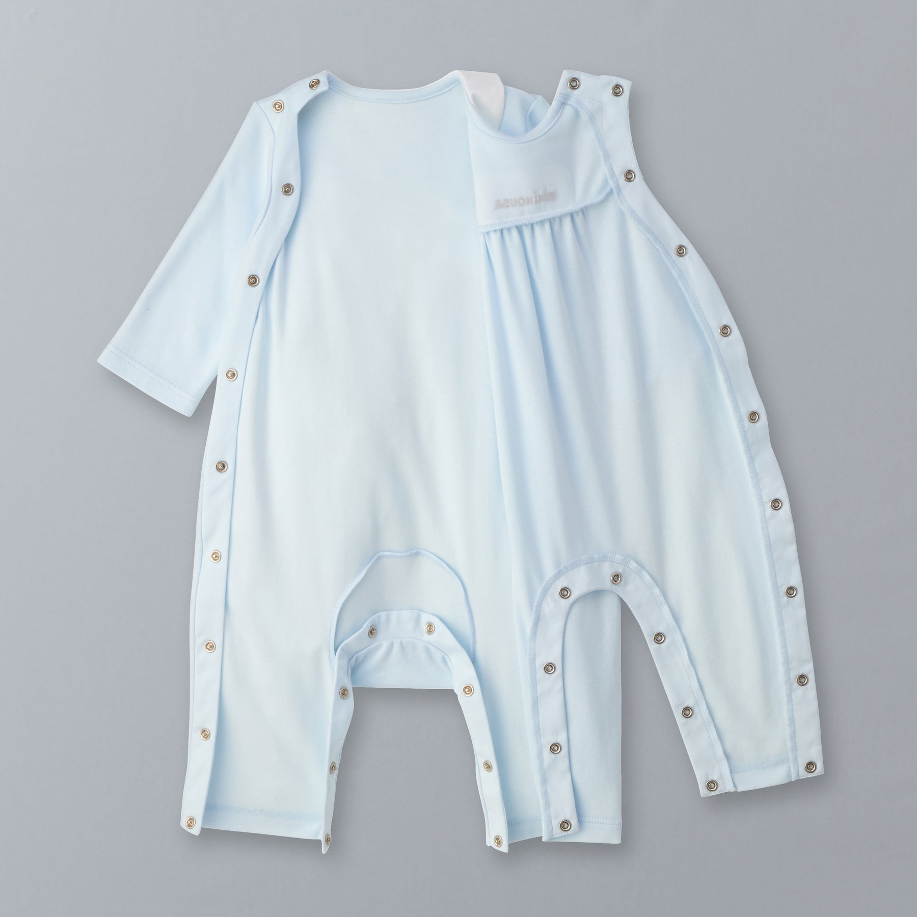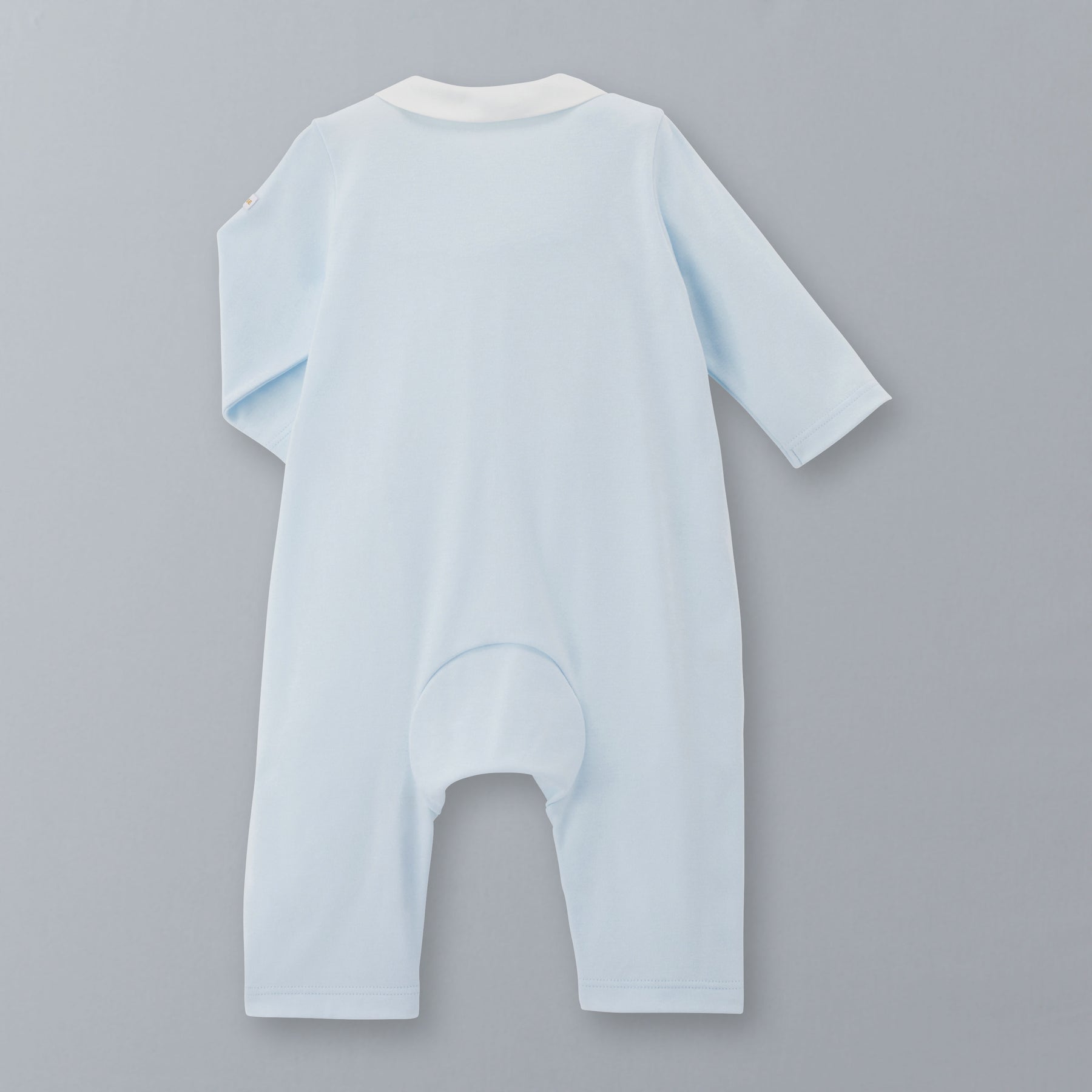 The coverall with its small white collar, which gives a very cute and refined impression, will make the star of the show—the baby—shine even more.
