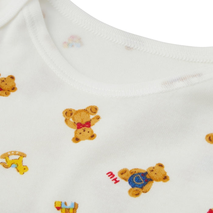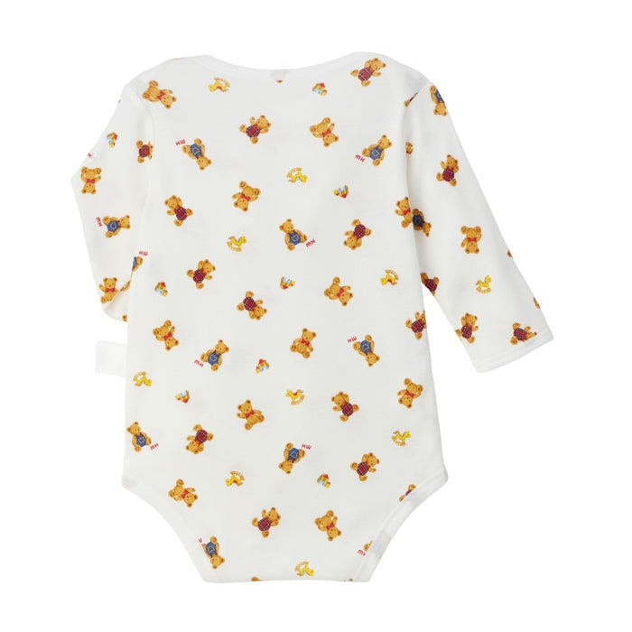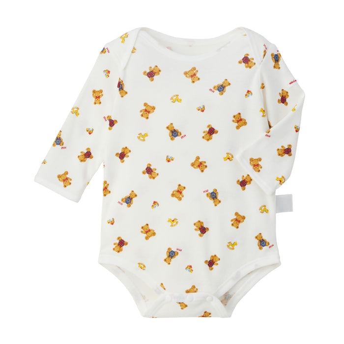 This is a long-sleeved bodysuit made of ribbed fabric that can be worn comfortably at any time of the year. The popular bear and pastel logo print design can be worn by both boys and girls. This bodysuit, which can be used as an inner layer, is a convenient underwear item once your baby graduates from short undershirts and combination undershirts.