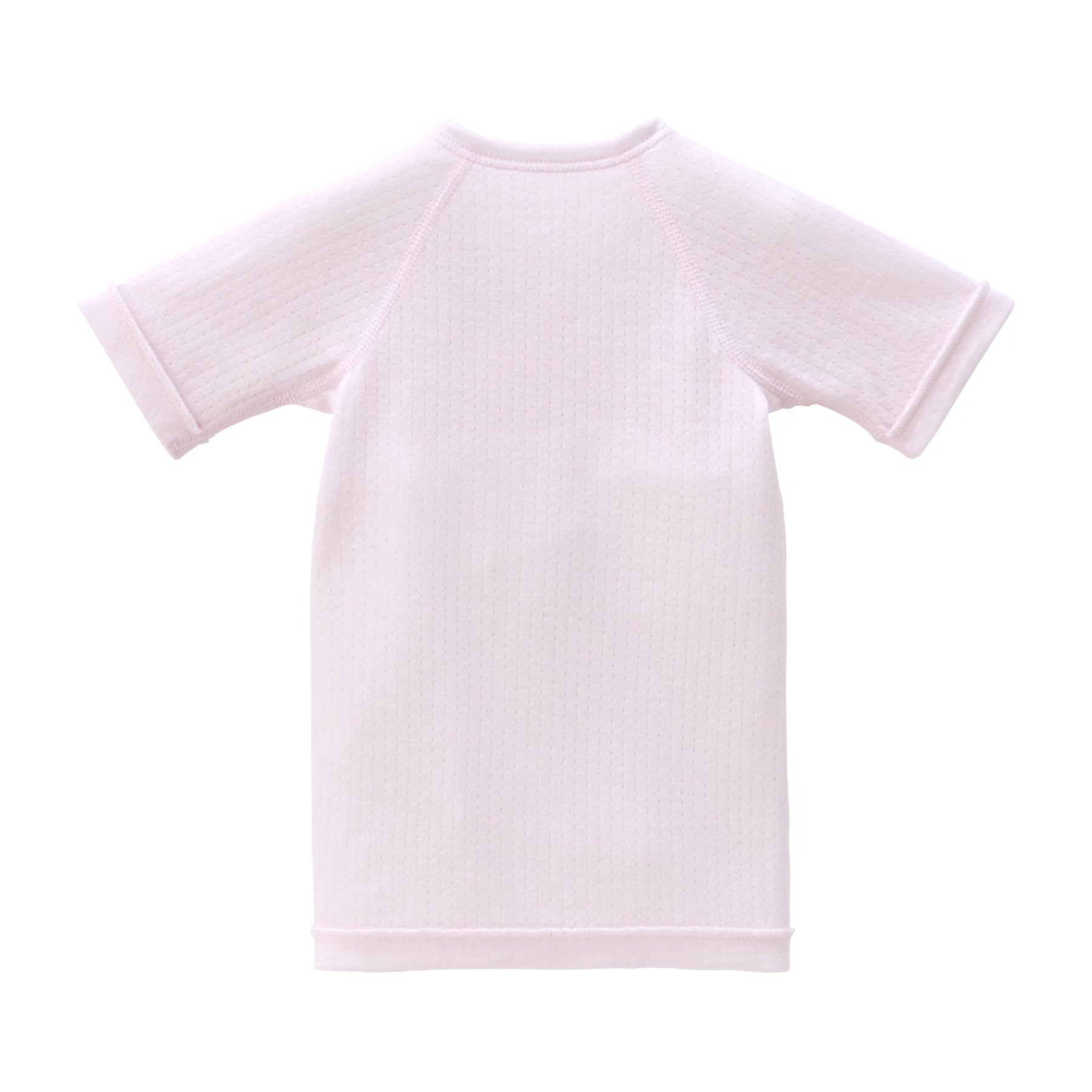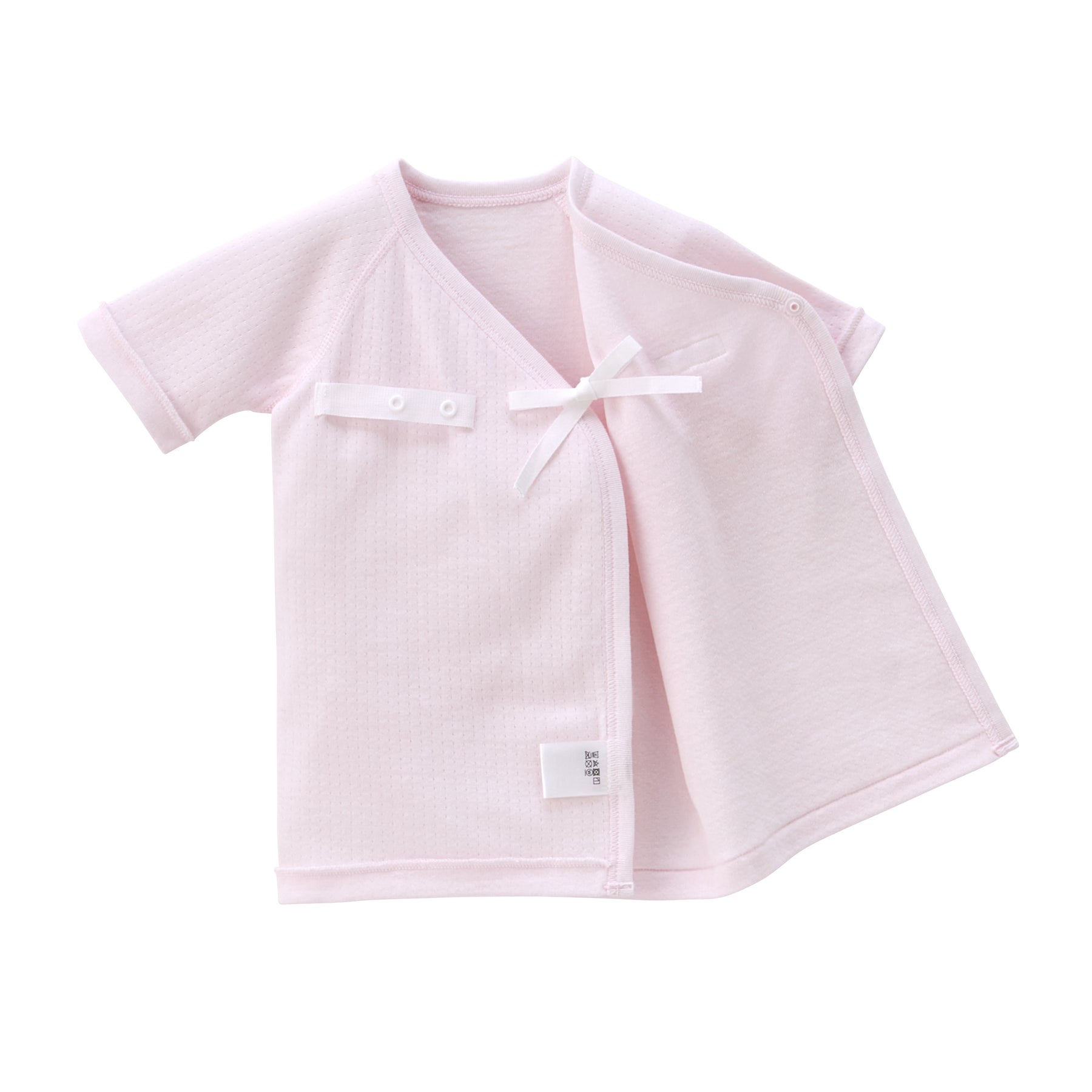 This is a short undershirt made of soft, double-layer knit gauze material. A newborn undershirt with hook fastenings that make changing clothes easier. A basic item to prepare for childbirth.