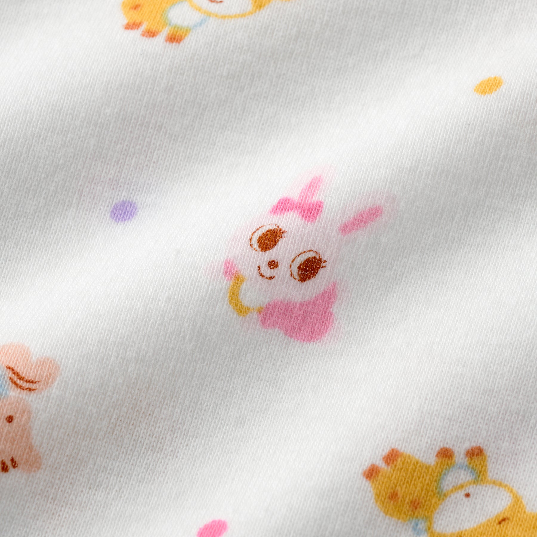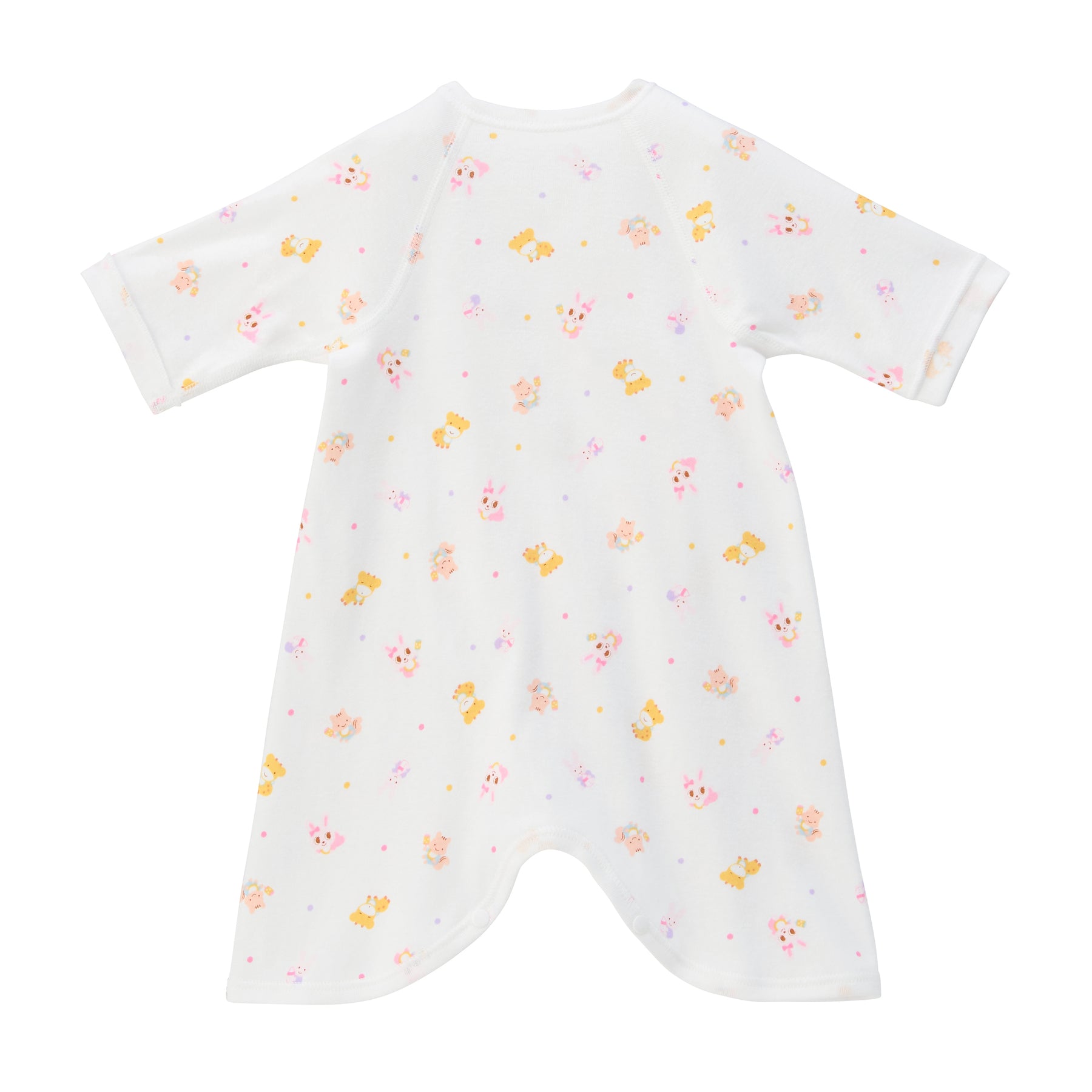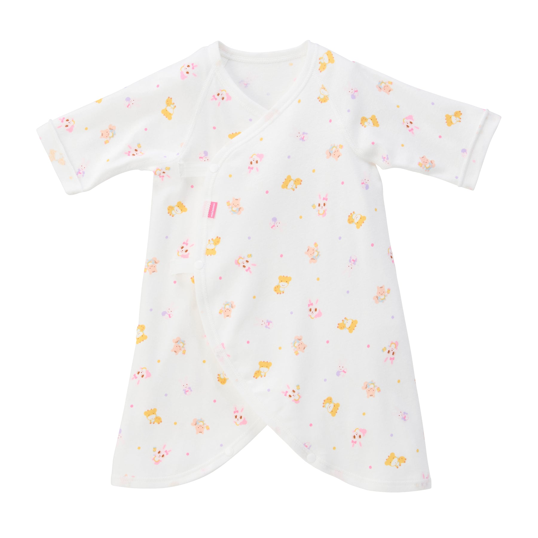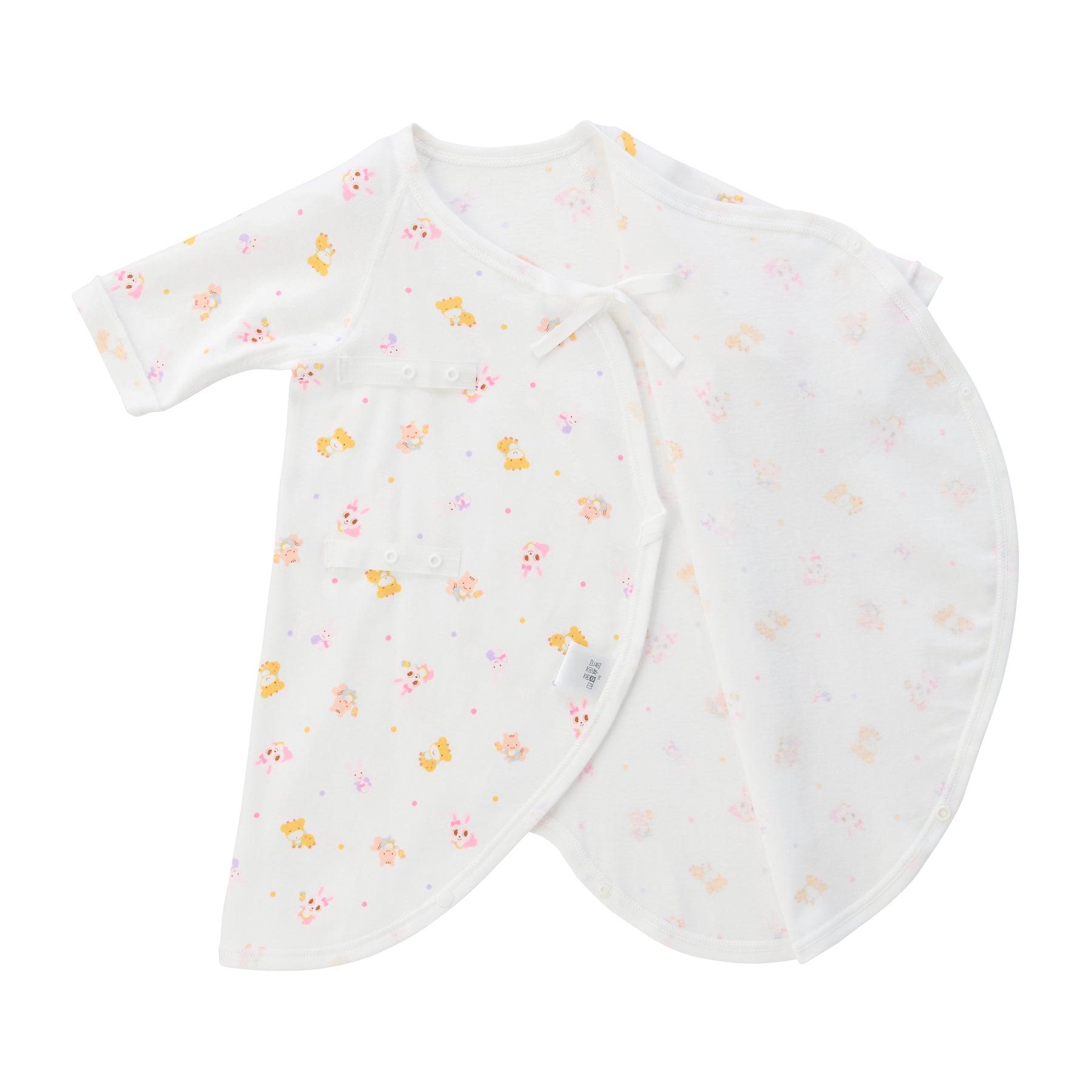 This is a combination undershirt made of ribbed fabric that can be worn comfortably at any time of the year. Popular patterns from Miki House are now available in baby patterns: Baby Usako and Baby Animal. A floral print pattern, popular with girls, is also available. This newborn undershirt uses snaps to make changing clothes even easier. It is a basic item for preparing for childbirth.