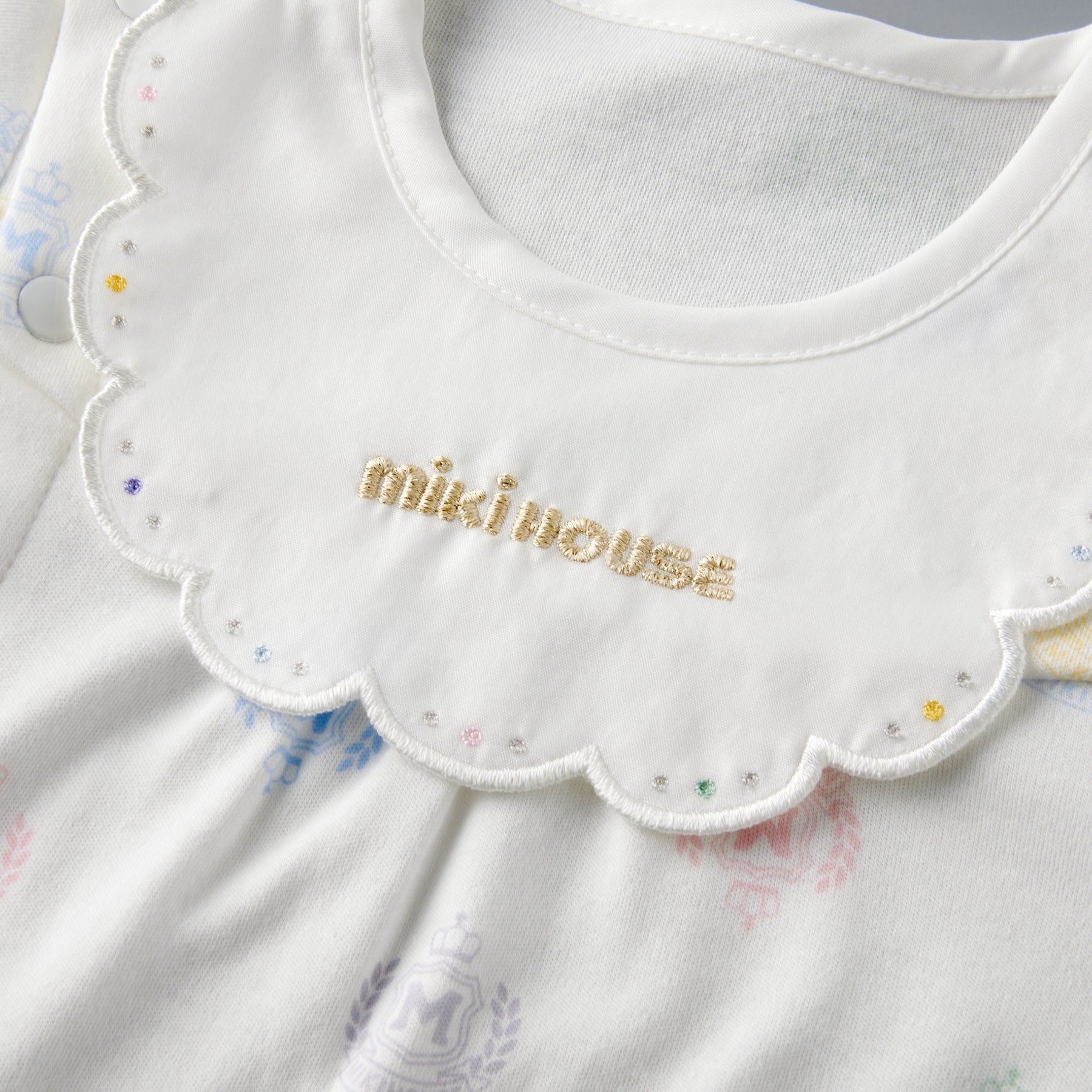 The collar decoration with elegant gold embroidery is very gorgeous, and the all-over monogram print featuring the letter “M” is a luxurious design that is quintessentially Miki House.