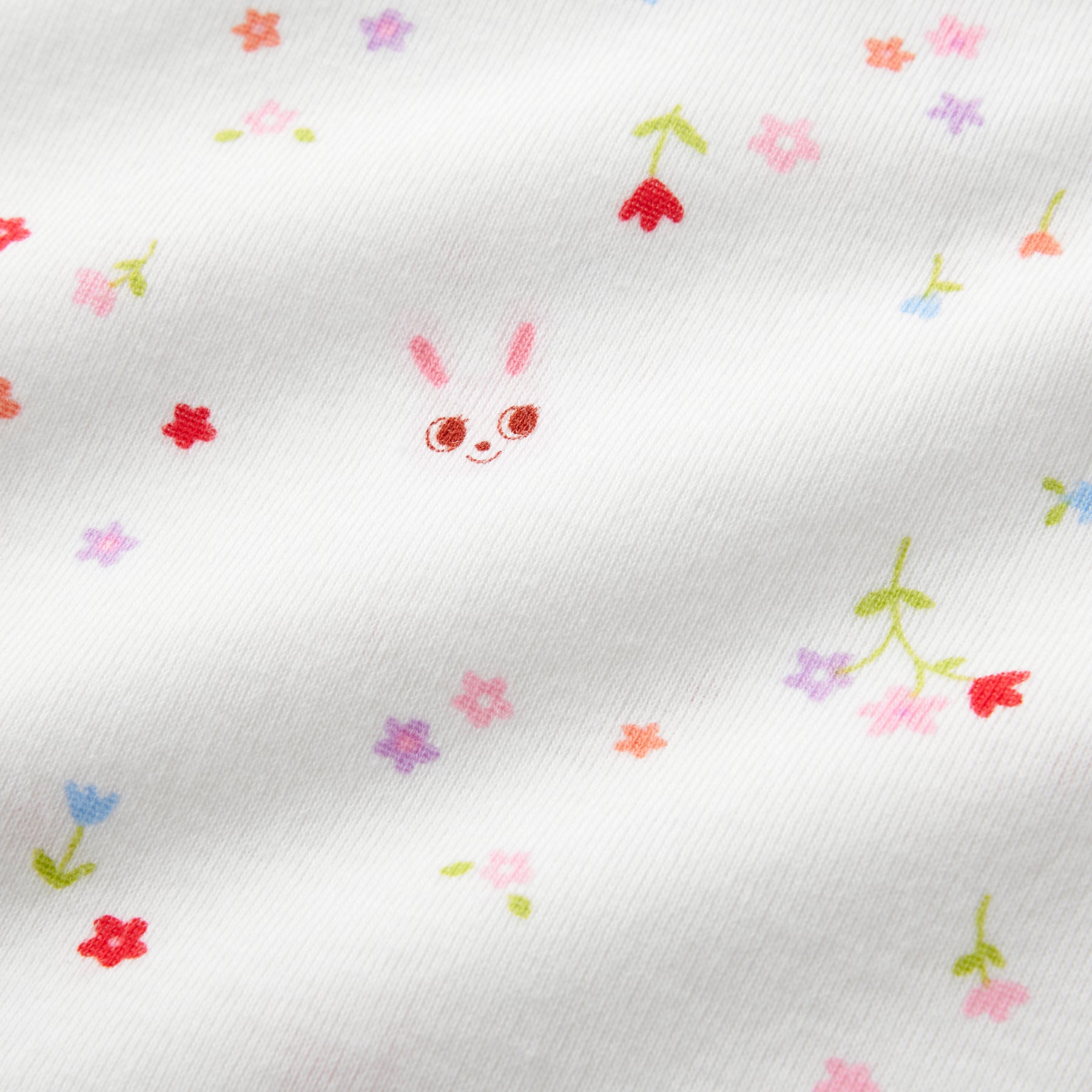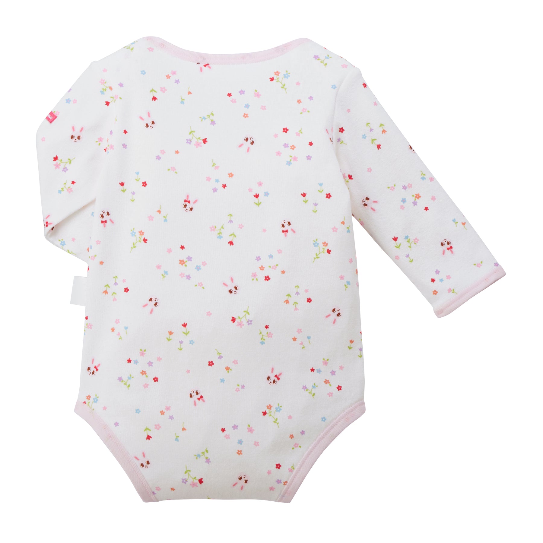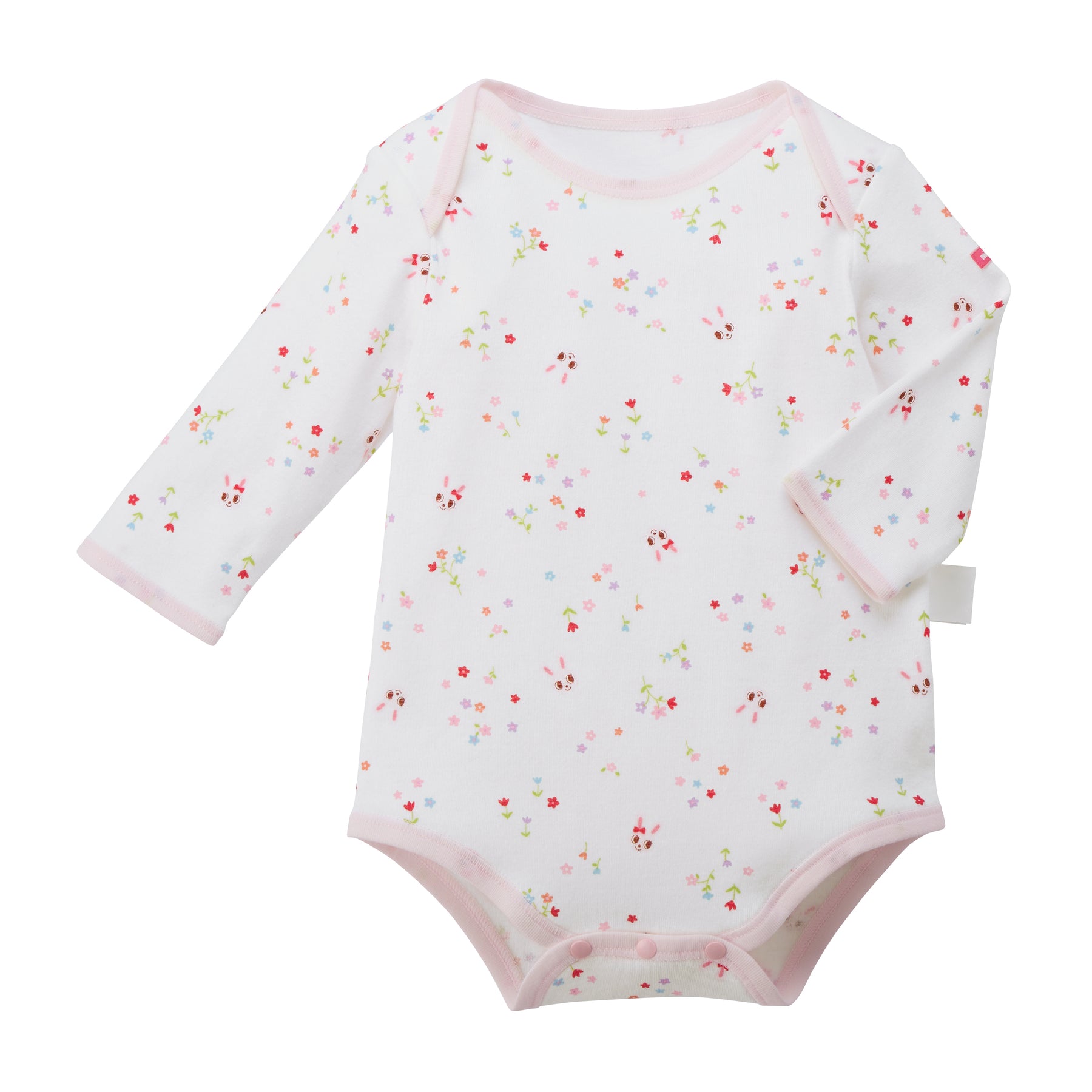 This is a long-sleeved bodysuit made of rib knit material that can be worn comfortably at any time of the year. Popular Miki House patterns are now available in baby patterns featuring Baby Usako and Baby Animals. A floral print pattern, popular with girls, is also available. This bodysuit, which can be used as innerwear, is a convenient undergarment once your baby graduates from short undershirts and combination undershirts.