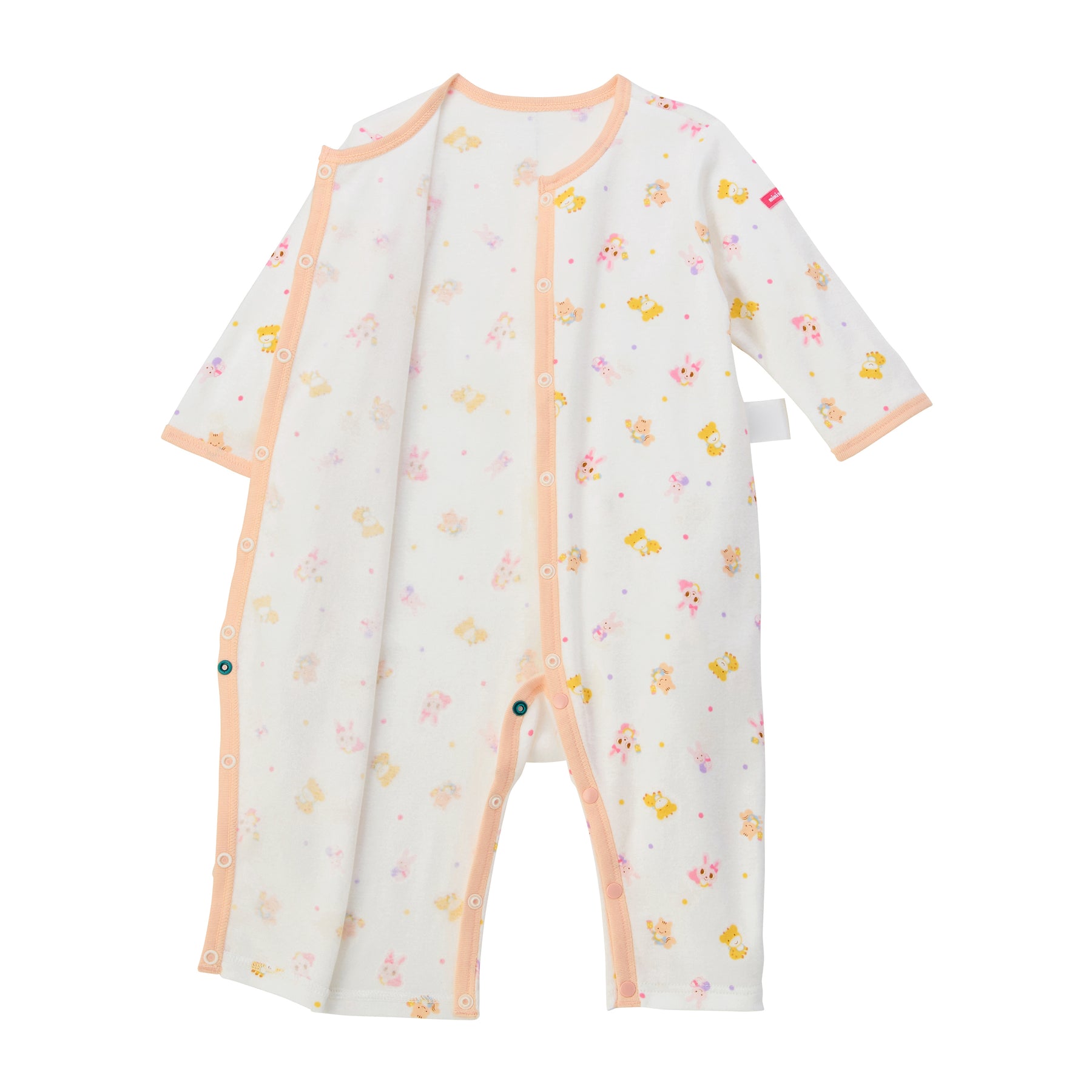 This coverall underwear is made of ribbed fabric that can be worn comfortably at any time of the year. Popular Miki House patterns are now available in baby patterns: Baby Usako and Baby Animal. A floral print pattern, popular with girls, is also available. Sizes are offered up to 90cm to accommodate larger sizes.
