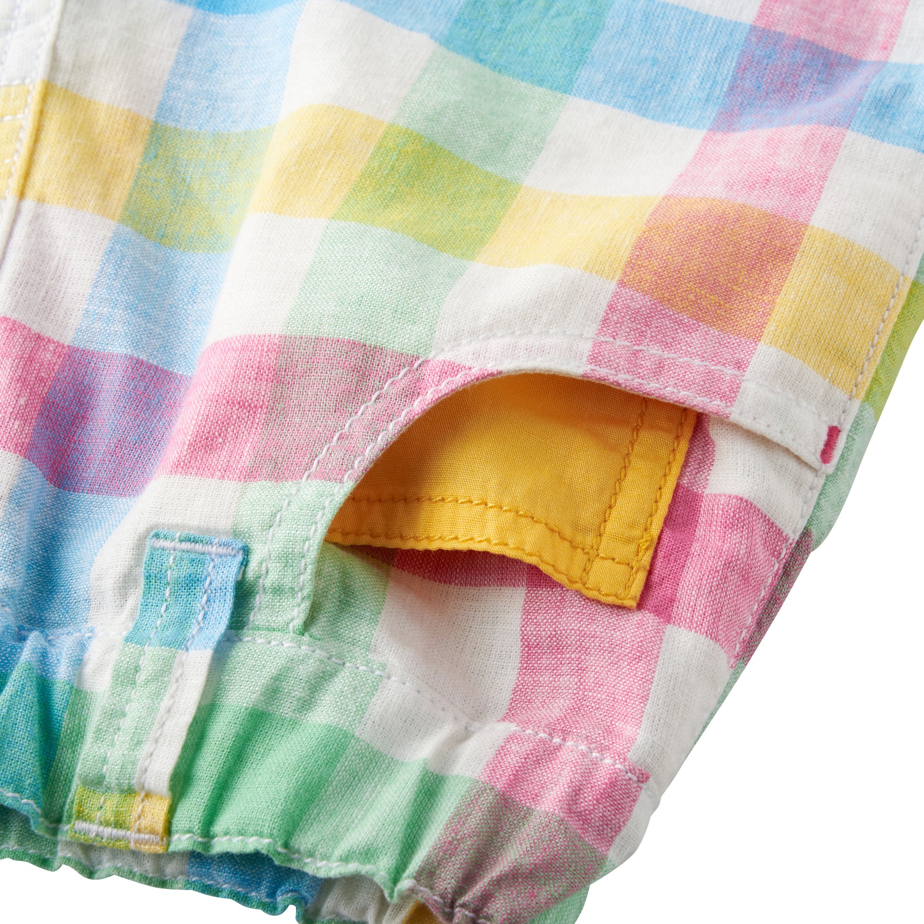 These are summery, refreshing, vitamin-color check half pants. The Pucci patch and the small yellow pocket add an accent to the design.
