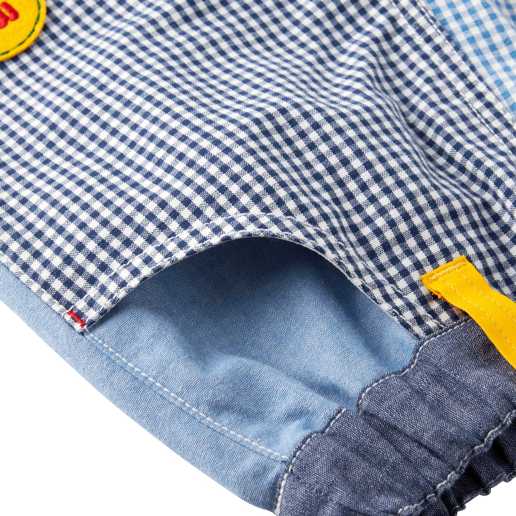 Playfulness is expressed with gingham checks in different color schemes on the left and right sides.