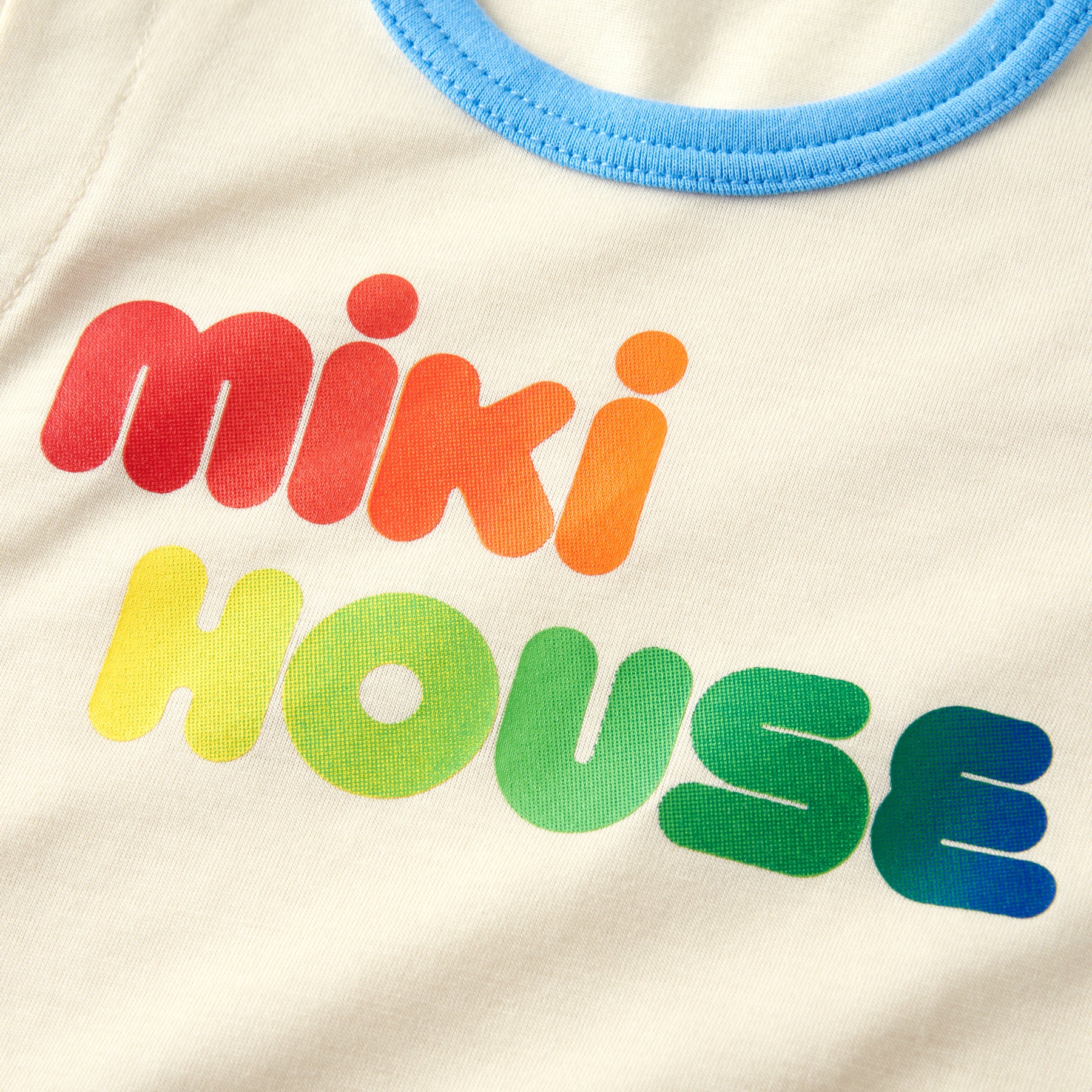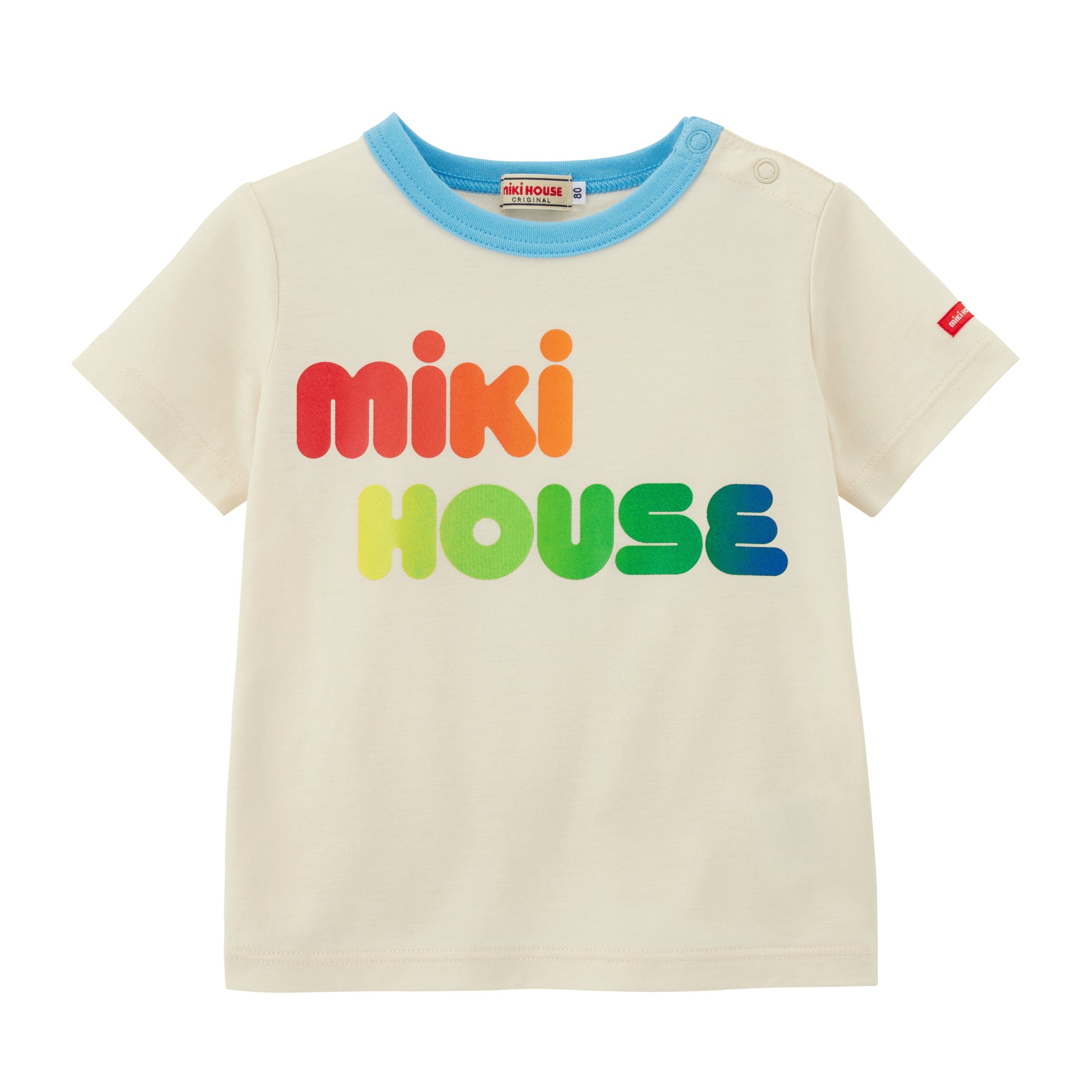 This short-sleeved T-shirt features a neon-colored Miki House logo as its key point.