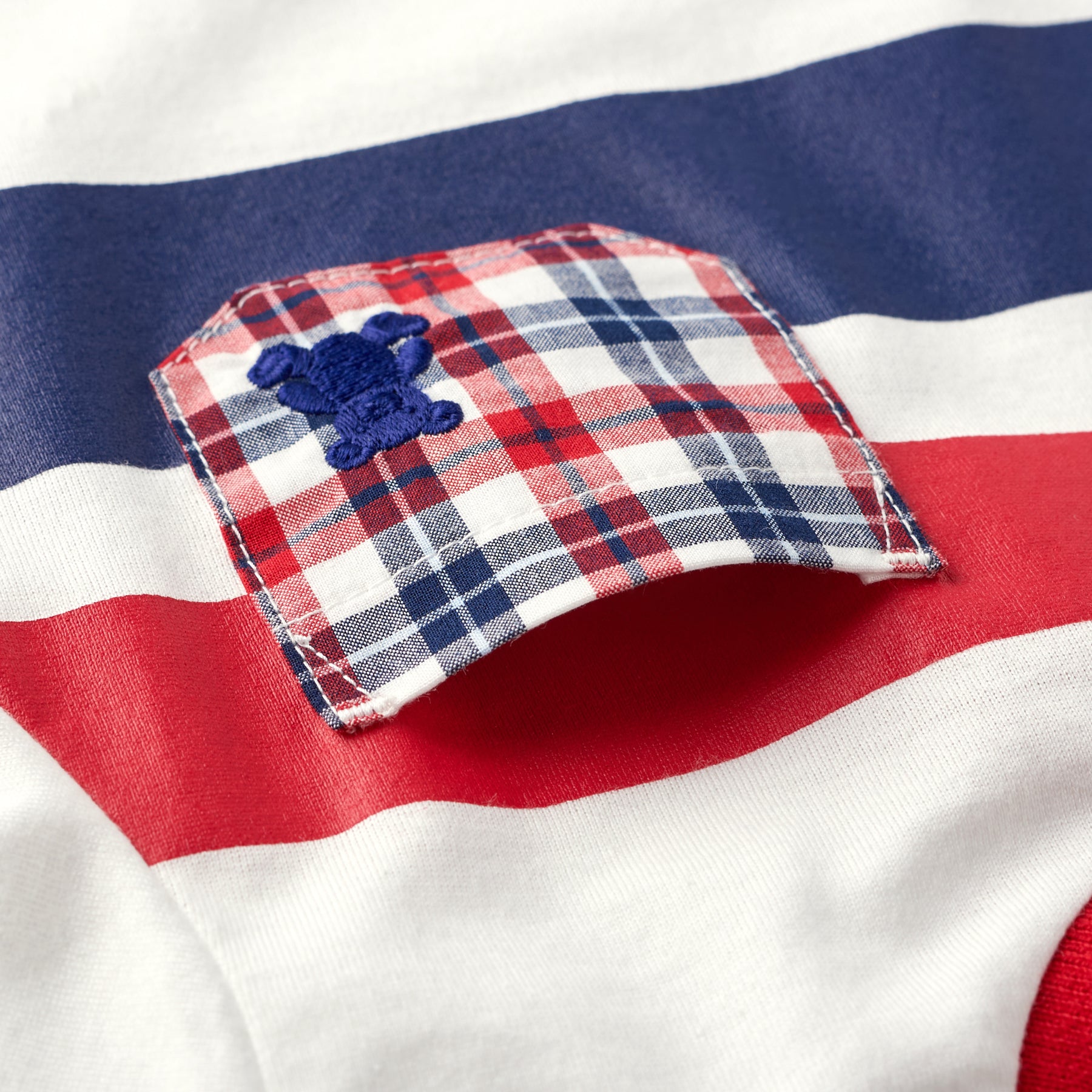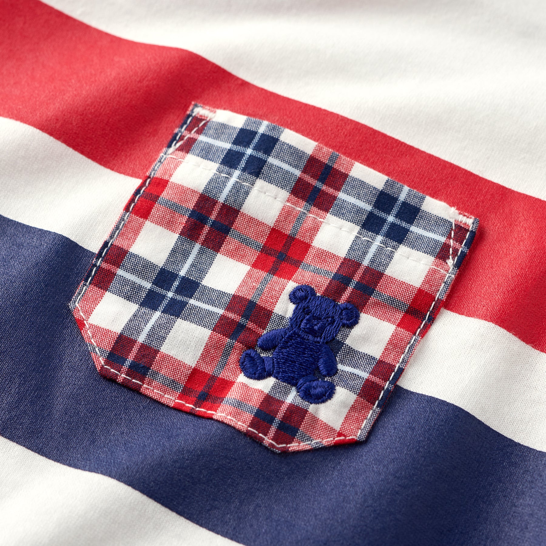The tricolor-style chest pocket is adorned with an embroidered silhouette bear.