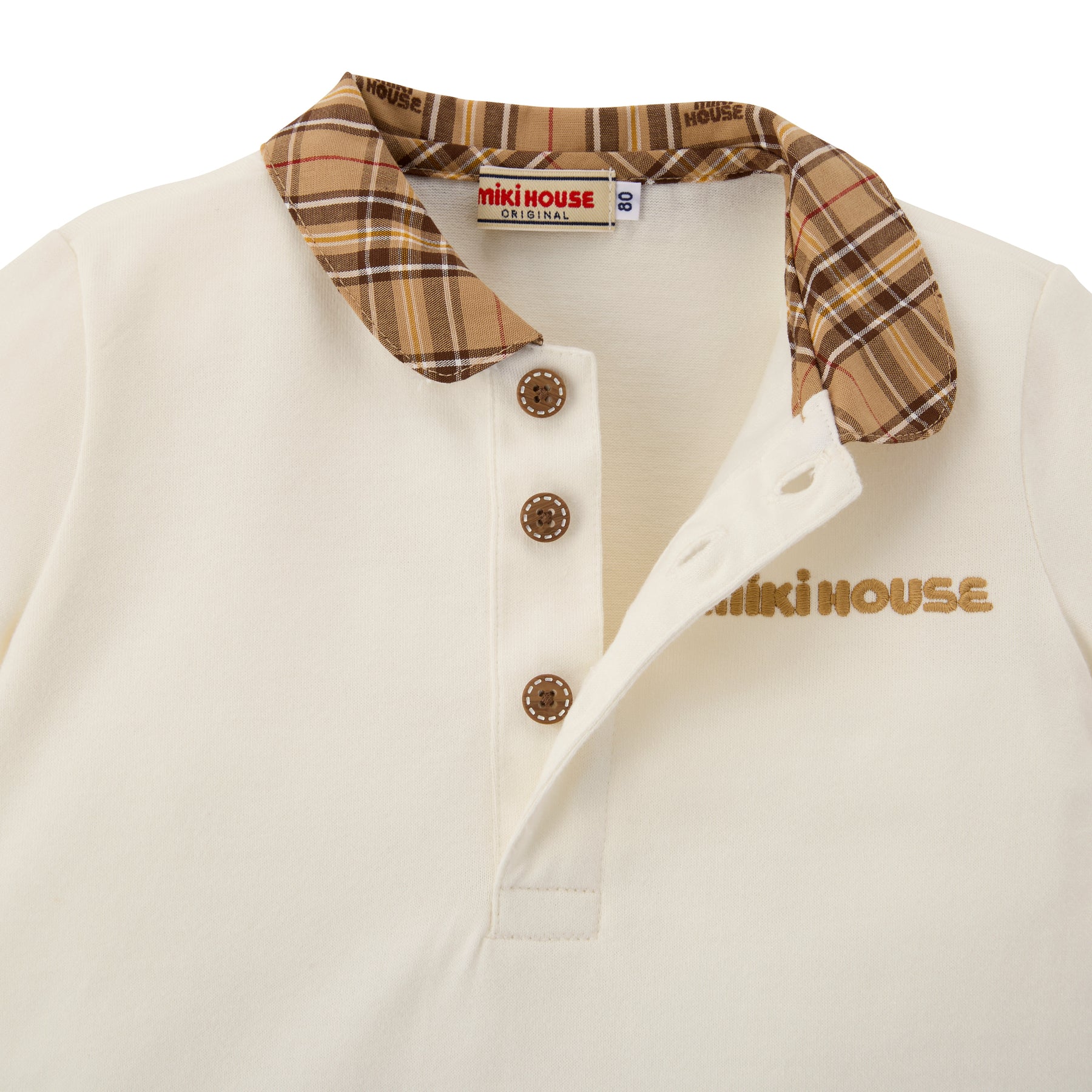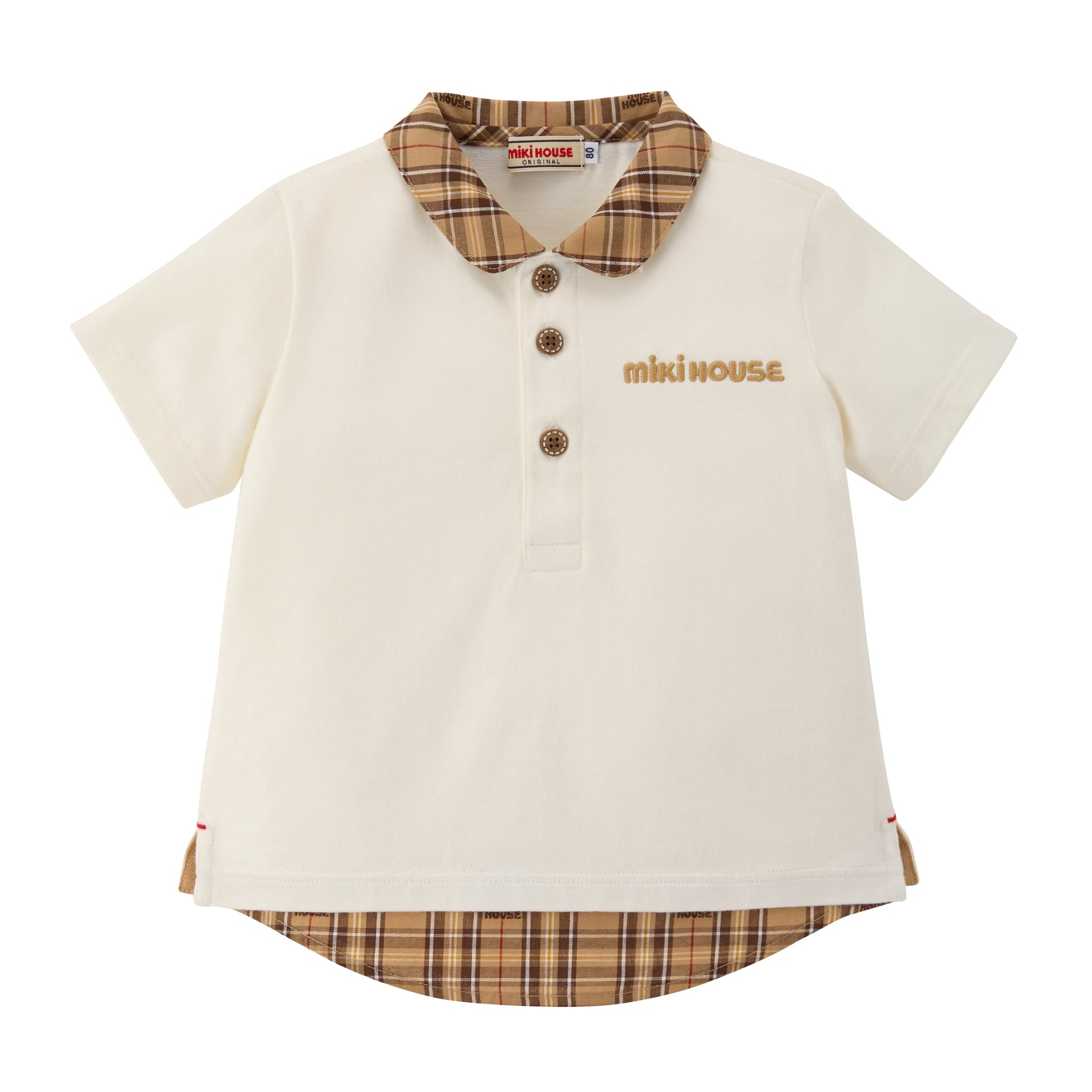 This is a layered-look short-sleeve T-shirt with a Miki House check pattern.