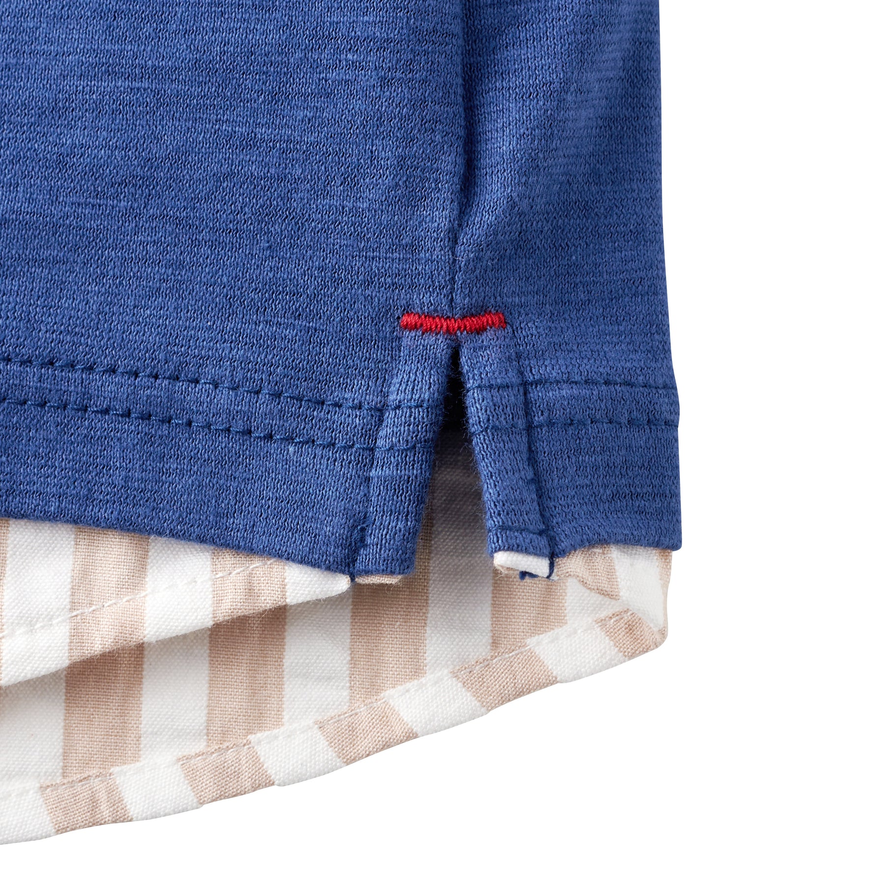 <White> Slub SZ jersey, (checkered part) linen-blend yarn-dyed check <Navy> Slub SZ jersey, (striped part) yarn-dyed seersucker stripe