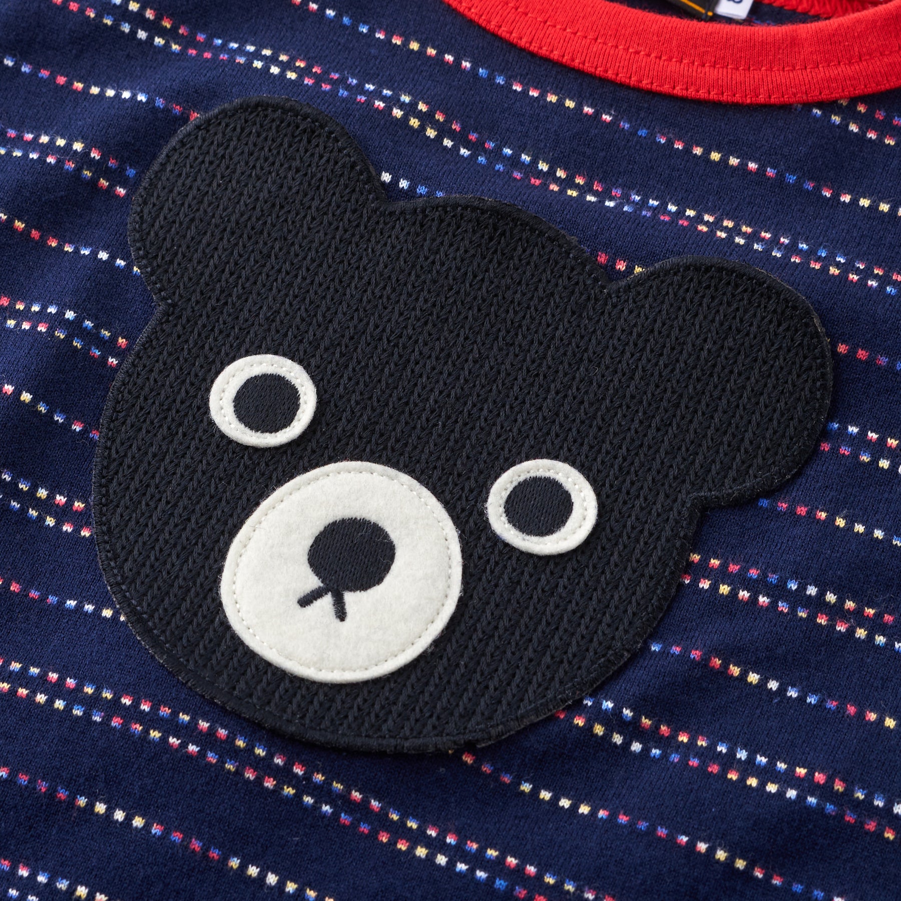 ・Features a large knitted embroidery of a black bear