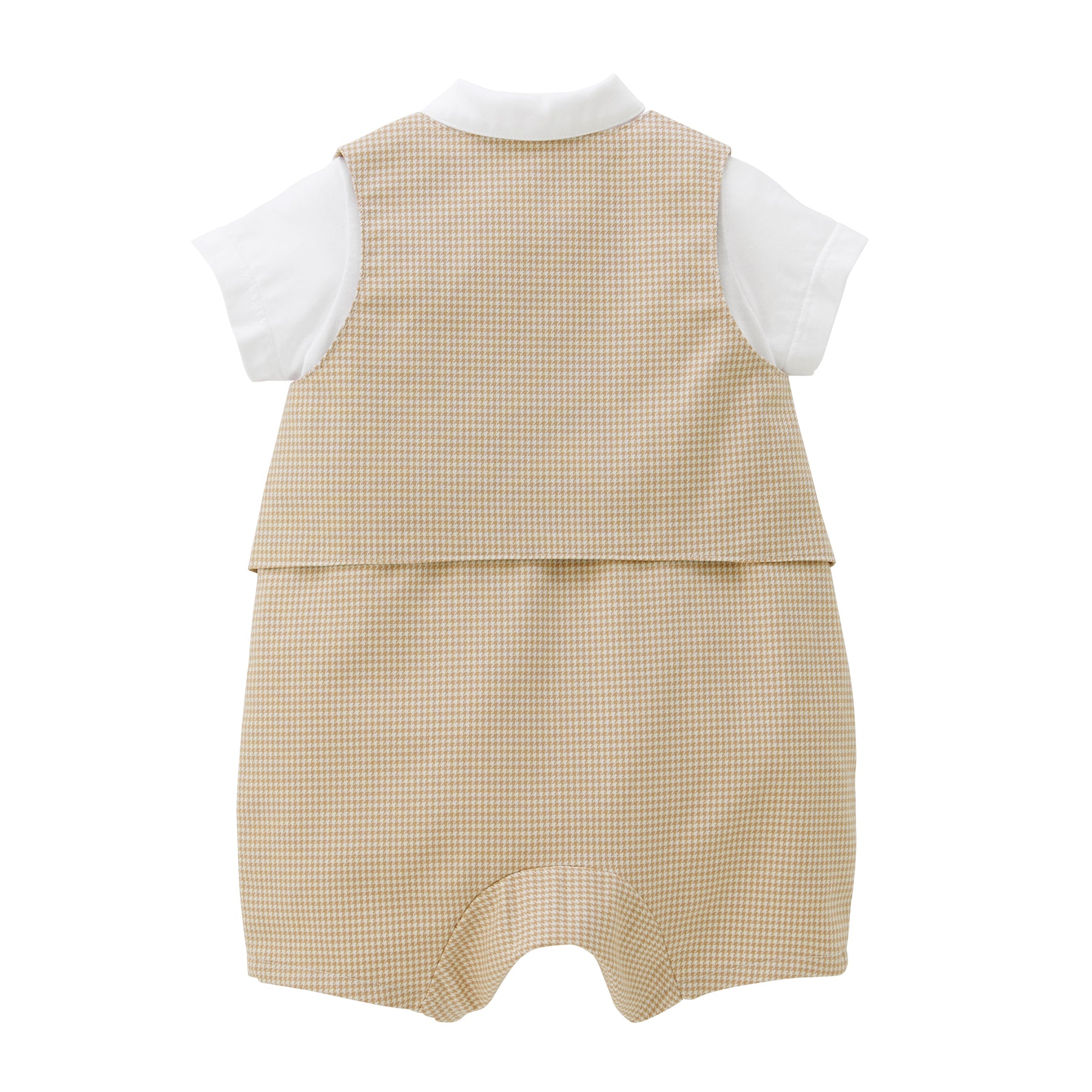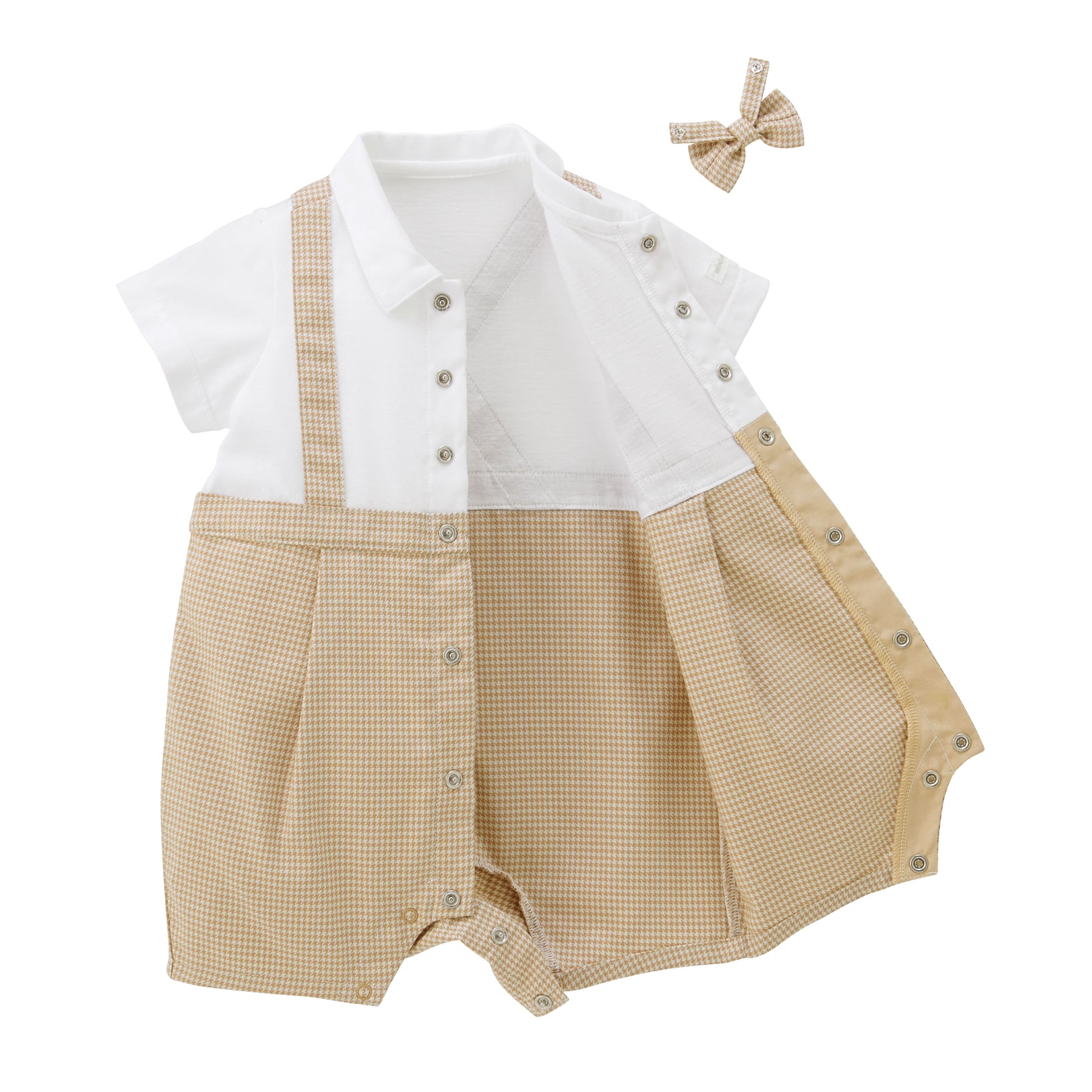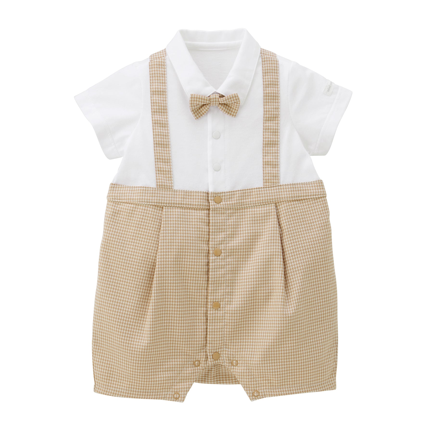 This is a tuxedo-style short all-in-one. With just one piece, your baby can be formally dressed, and it’s a popular baby formal item that looks great in photos. The color makes it easy to match various events and occasions such as invitations, introductions, and the first meal ceremony, so it is recommended. This formal wear is also appreciated as a baby gift or present.