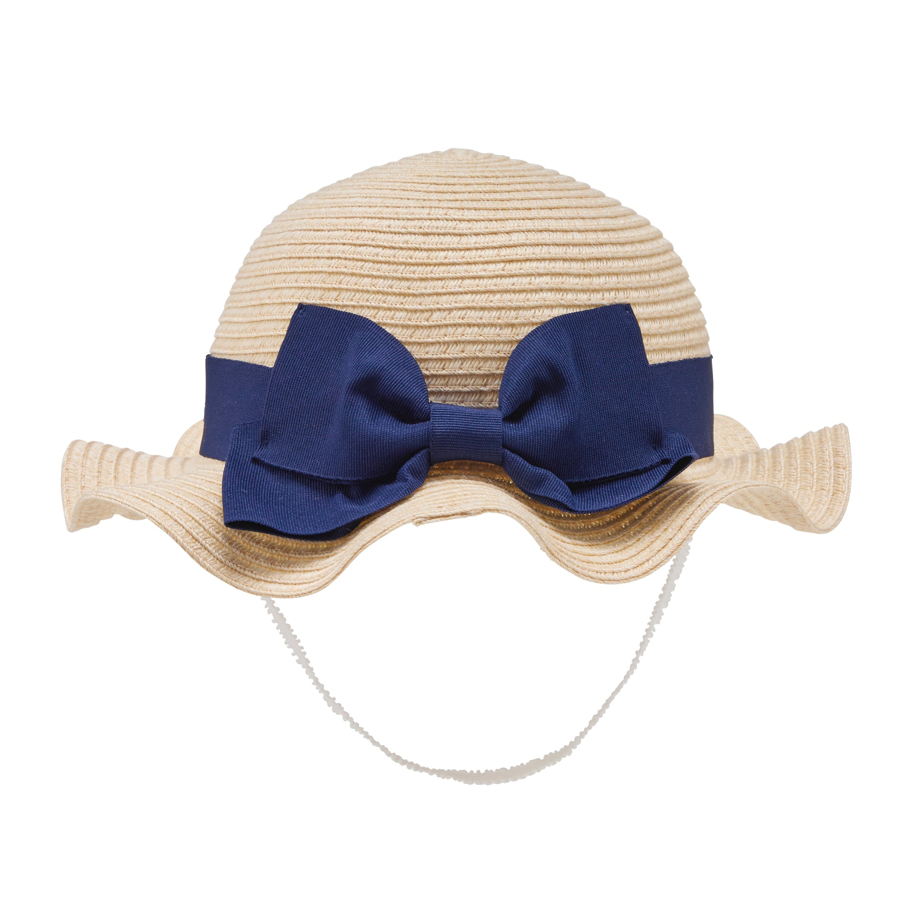 This is an elegant braided hat with a large ribbon and a rounded brim.
