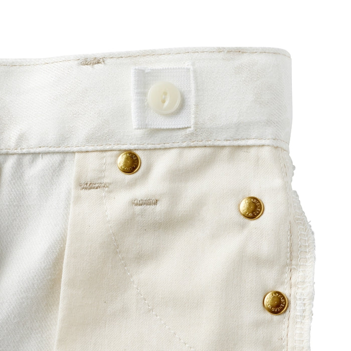 This simply designed pair of denim pants embodies the outstanding quality and technical expertise of a Japanese company with a proud 100-year history. Kurabo Industries (Kurashiki Spinning), the first in Japan to develop denim, is a pioneer of domestically produced denim. The fabric, woven with yarn dyed using Sakamoto Denim’s environmentally conscious “eco-dyeing system” technology, is an authentic, high-quality denim that is also gentle on the global environment.