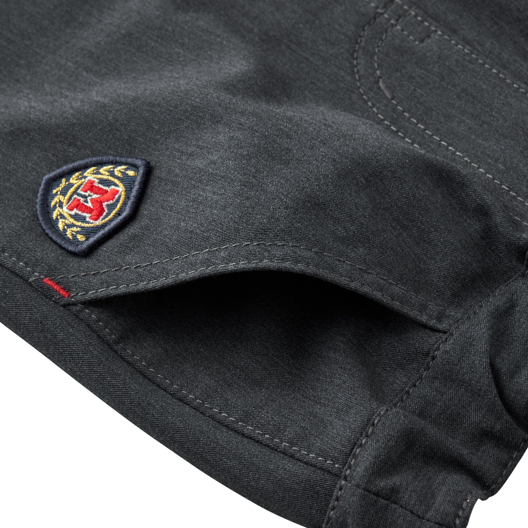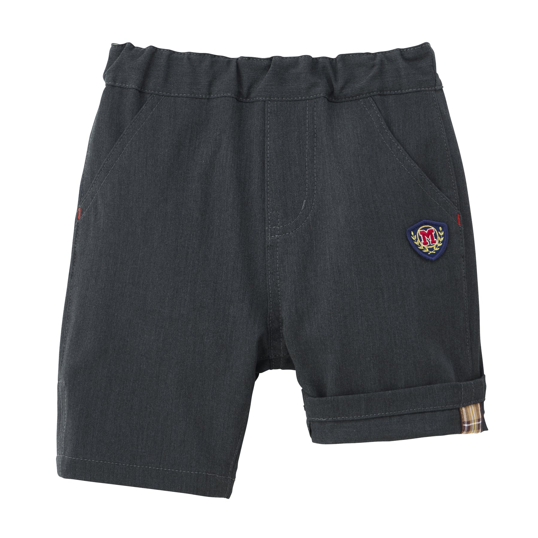 These half pants feature an elegant emblem below the left pocket.