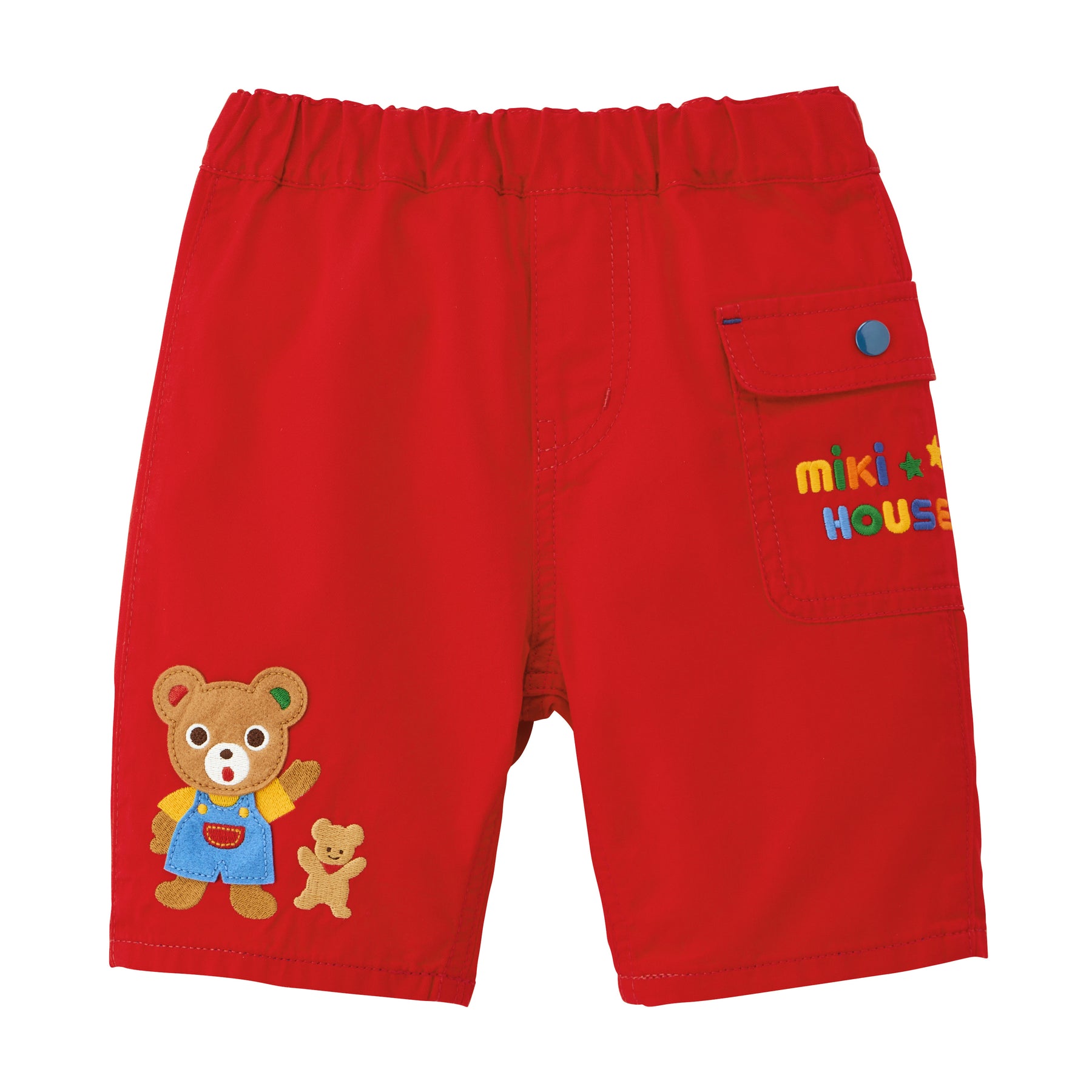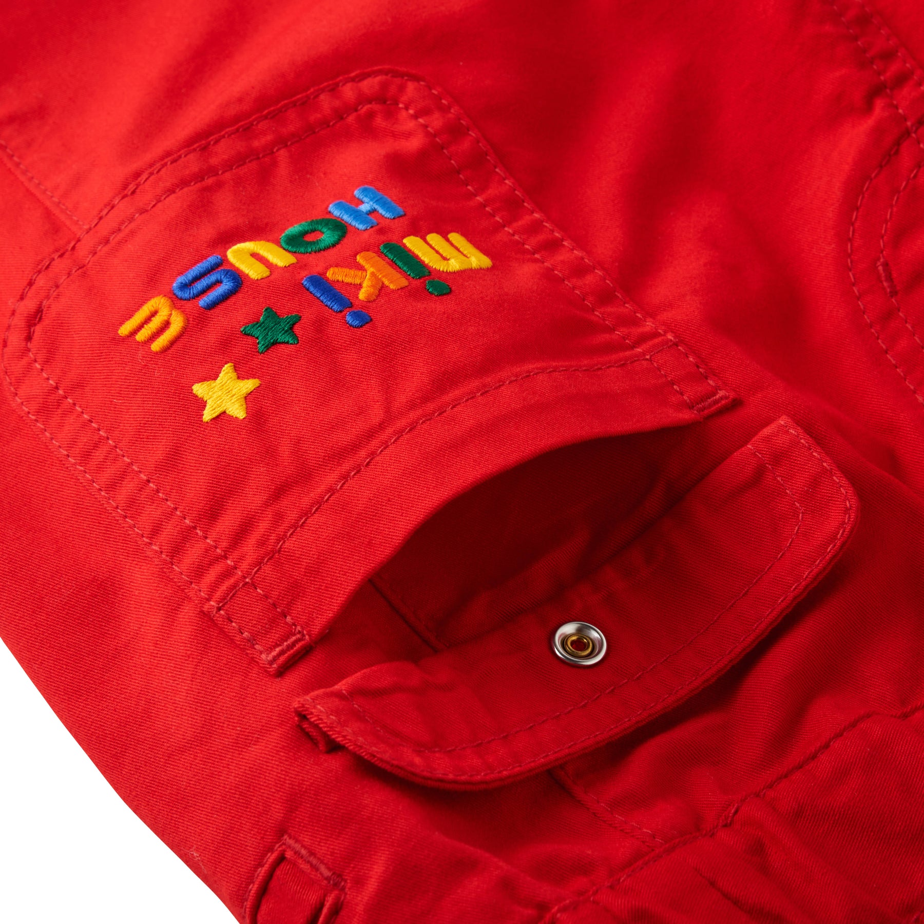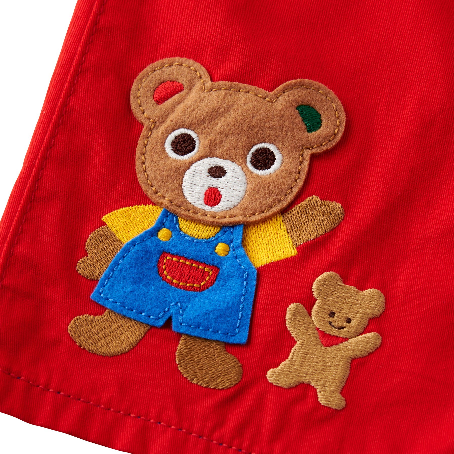 The pocket with a flap features colorful embroidered MIKI HOUSE logos, giving it a very childlike impression.