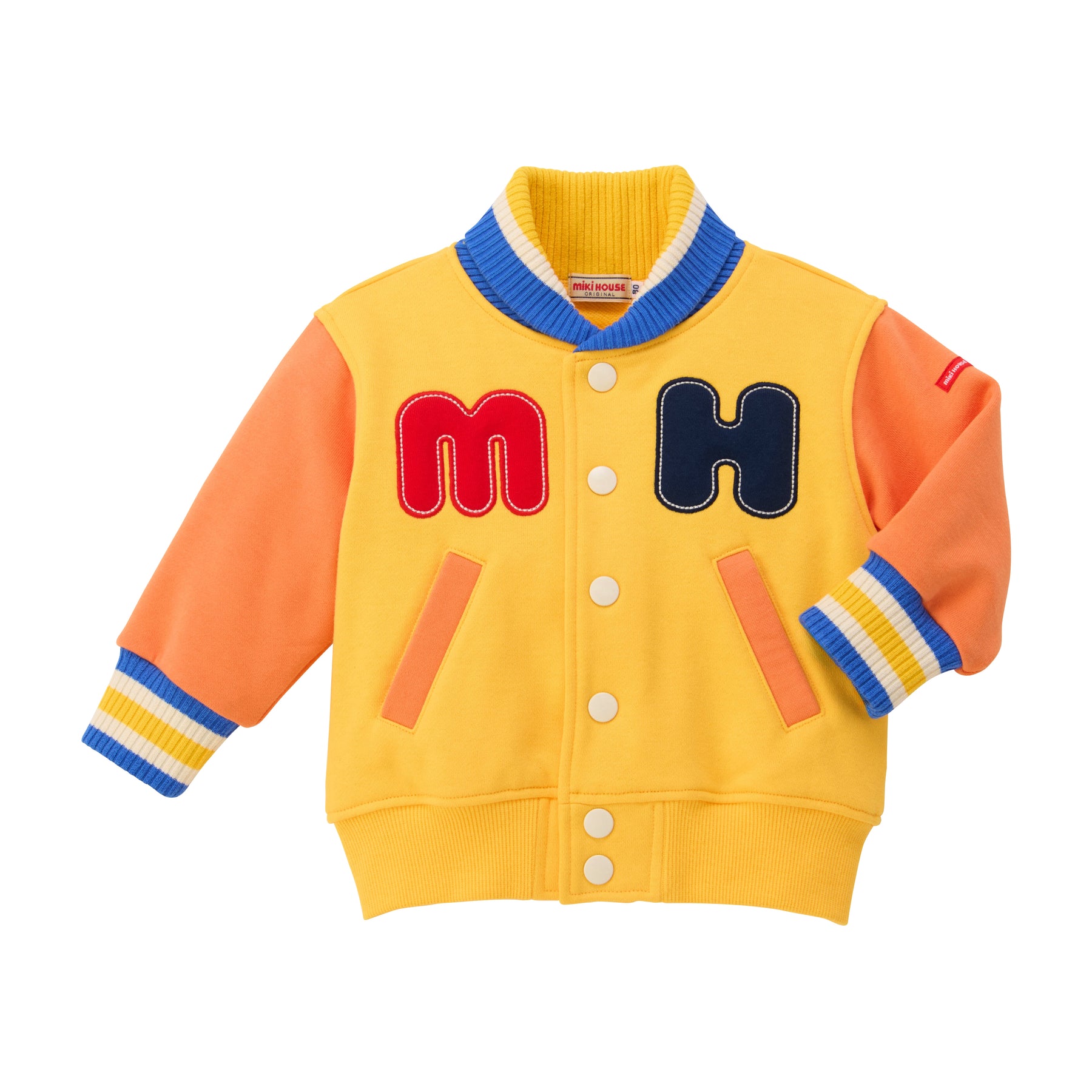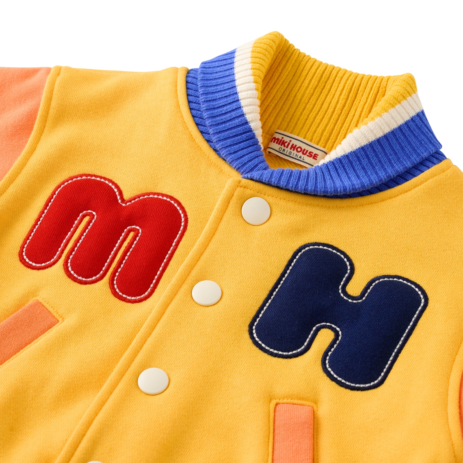 This jacket has a striking MH logo on the chest, styled like a varsity jacket.