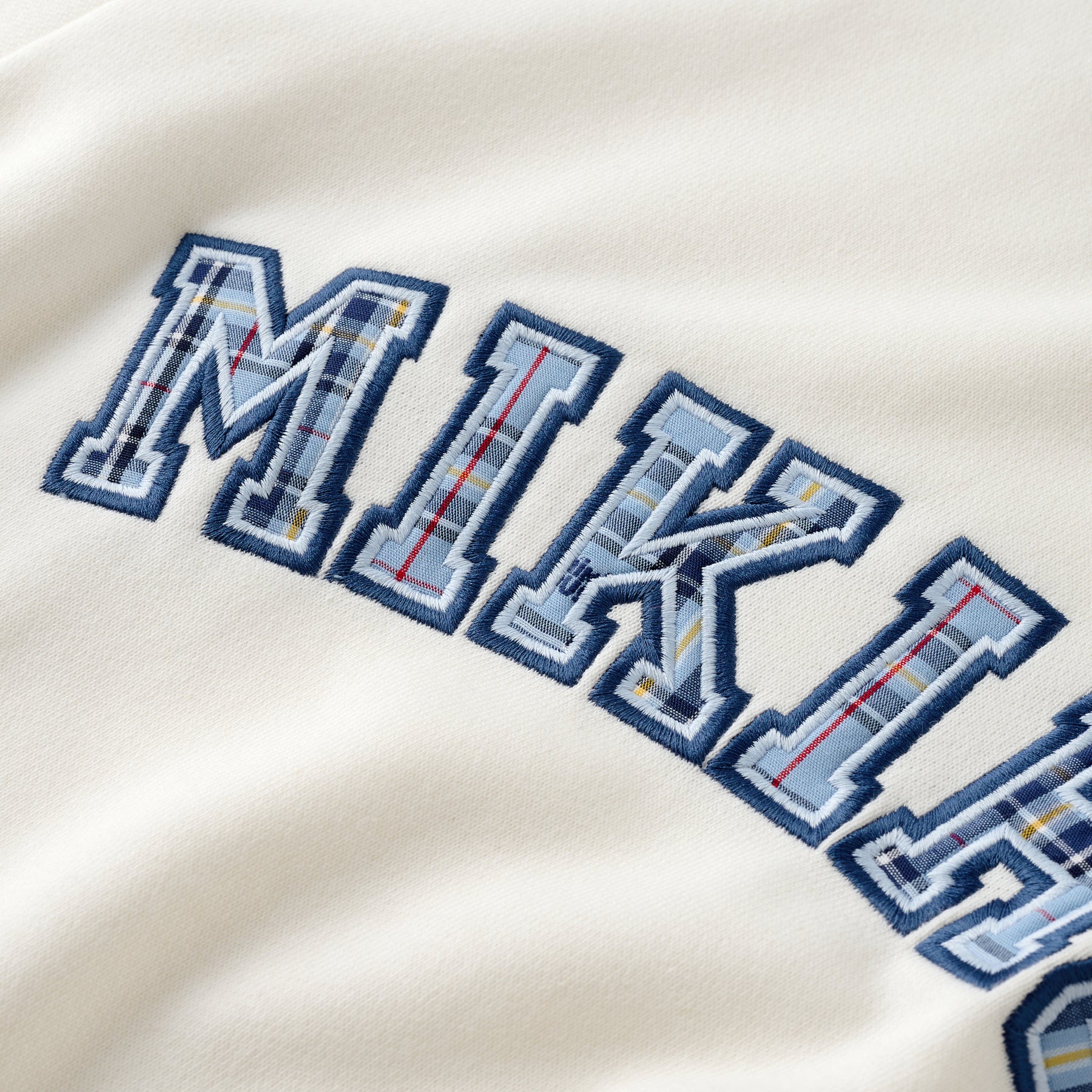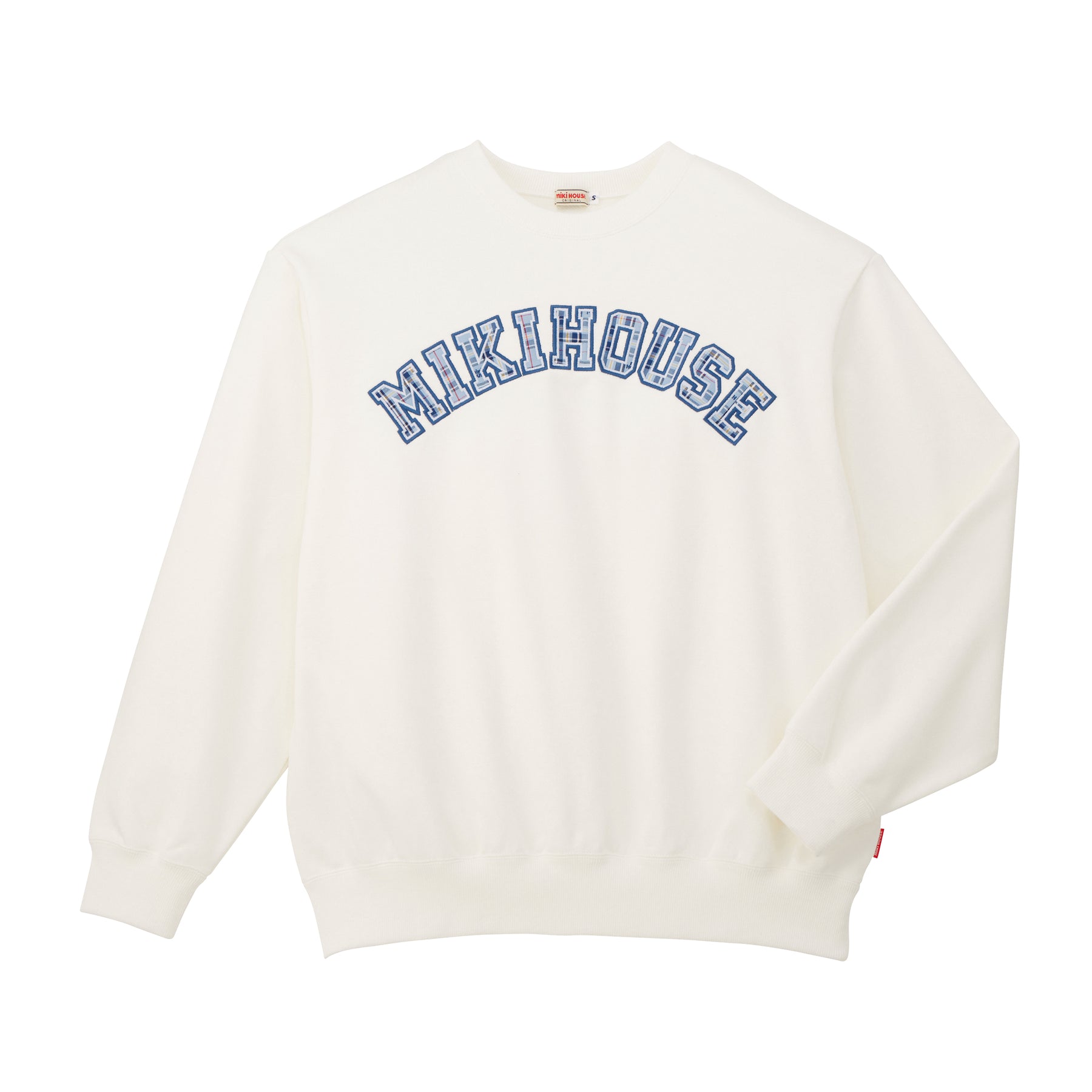 Featuring a font reminiscent of university sweatshirts combined with the Mikihouse check pattern, this casual sweatshirt offers a stylish look.
