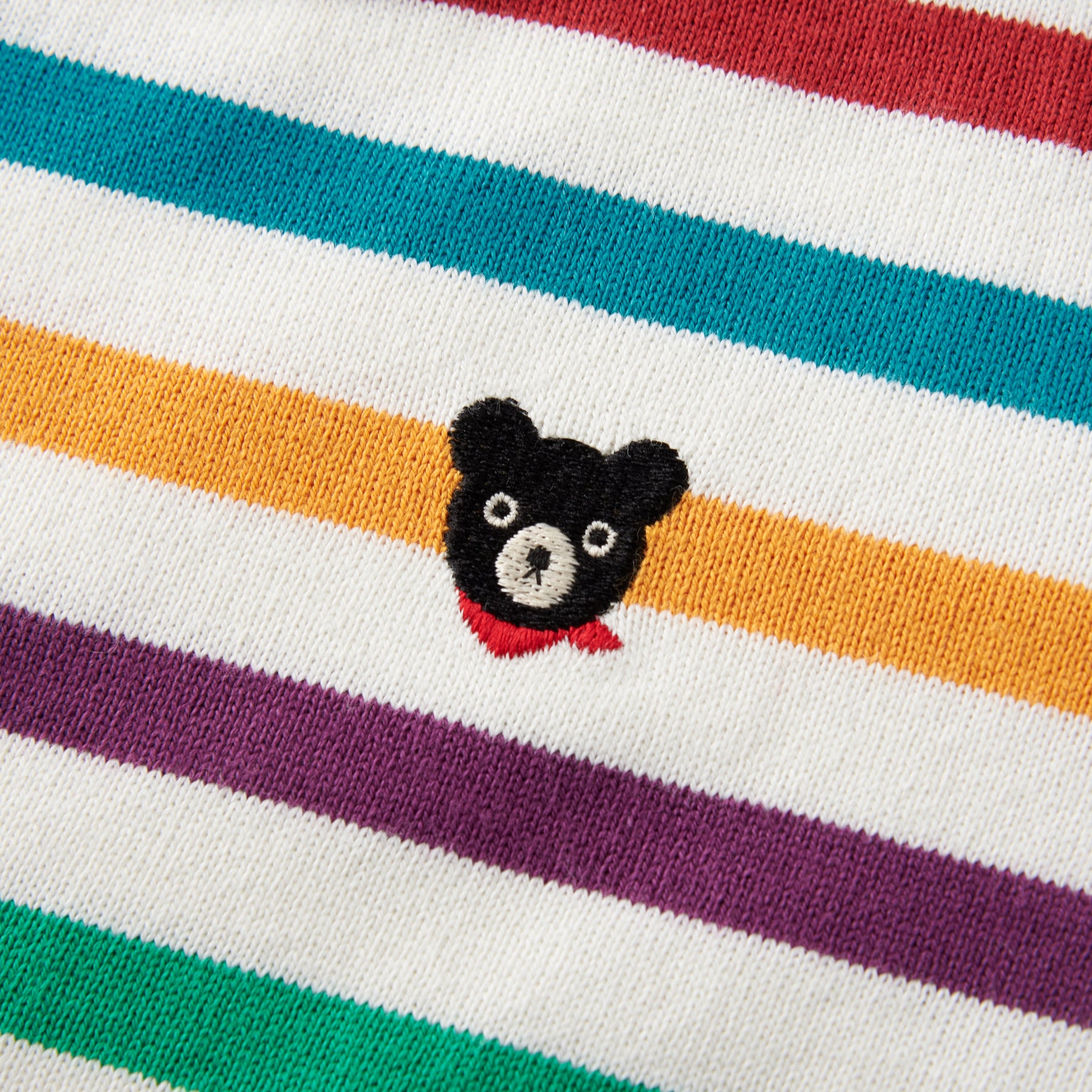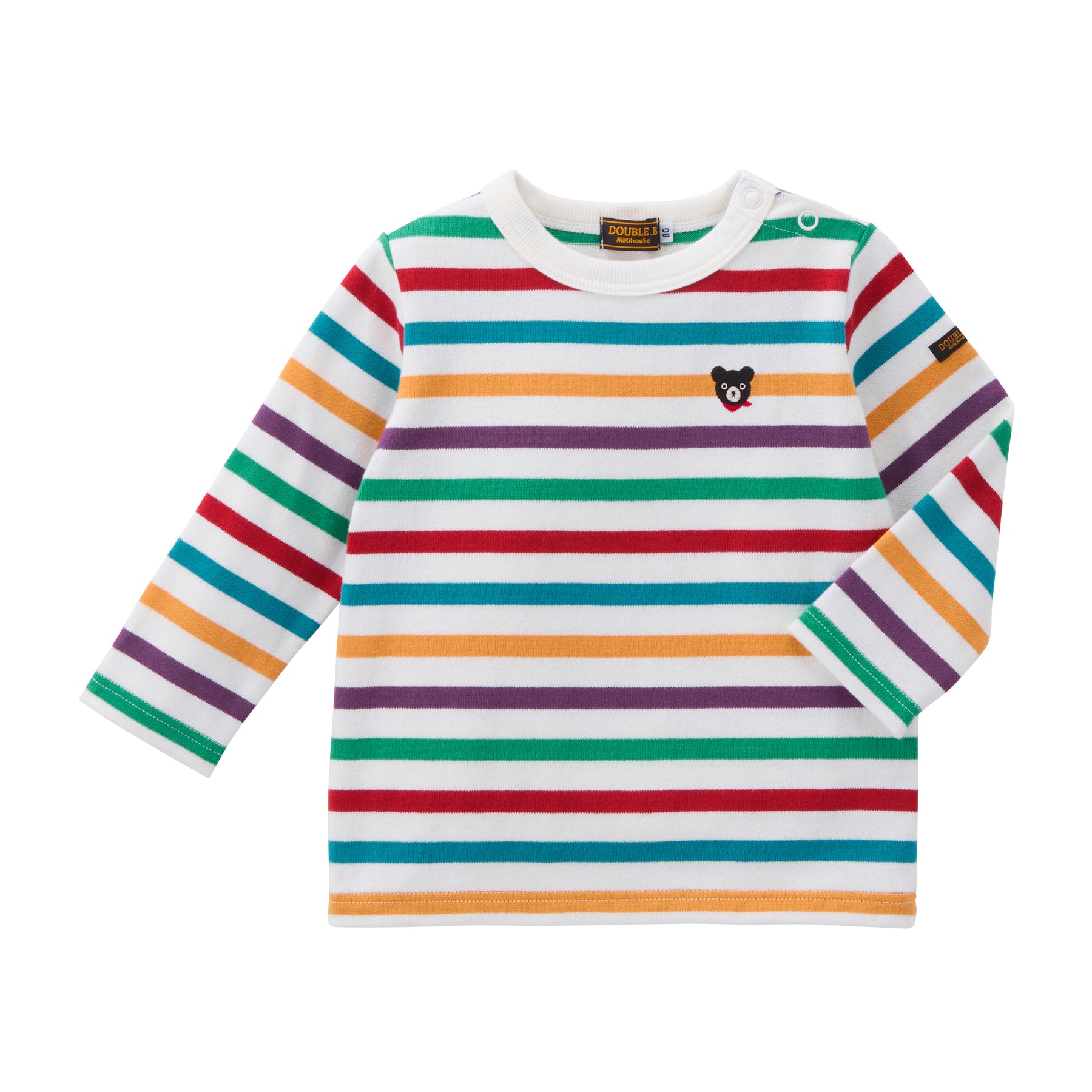 This is a long-sleeve striped T-shirt from the "D-Basic" series, crafted with high-quality materials and a simple design. It features a small black bear motif on the chest and comes in a wide range of sizes suitable for babies to kids.